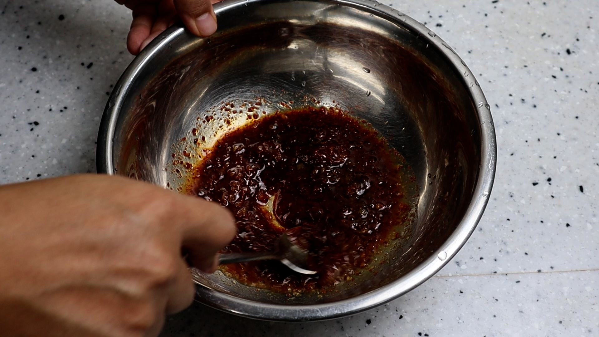 17. 가볍게 웍질을 해보면 보시는것 처럼 팬에 수분이 거의 없는게 보이시죠. 이런 상태면 잘 구워진거에요.