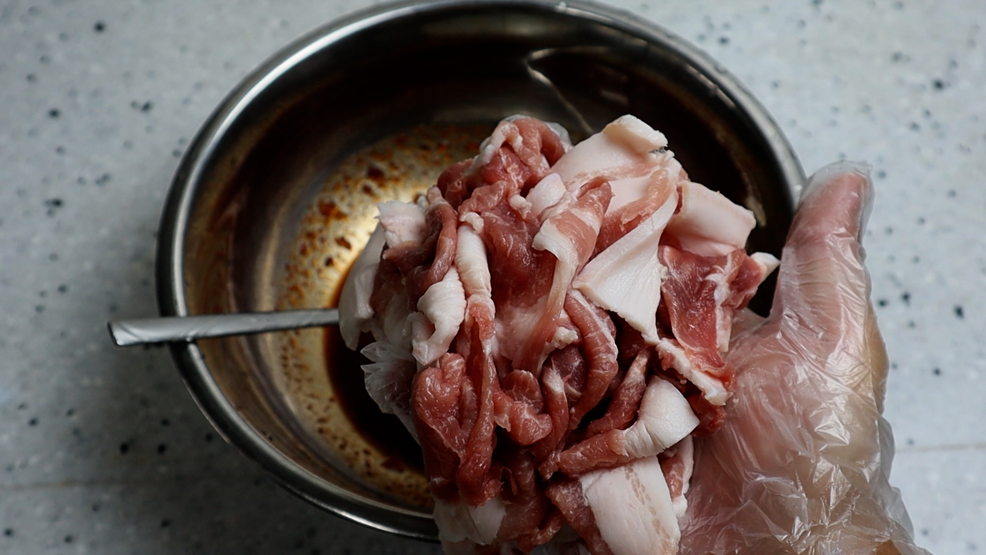 12. 돼지고기는 제육용으로 2~3mm 로 얇게 썰려 나오는걸로 준비해서 양념을 골고루 치대주세요.