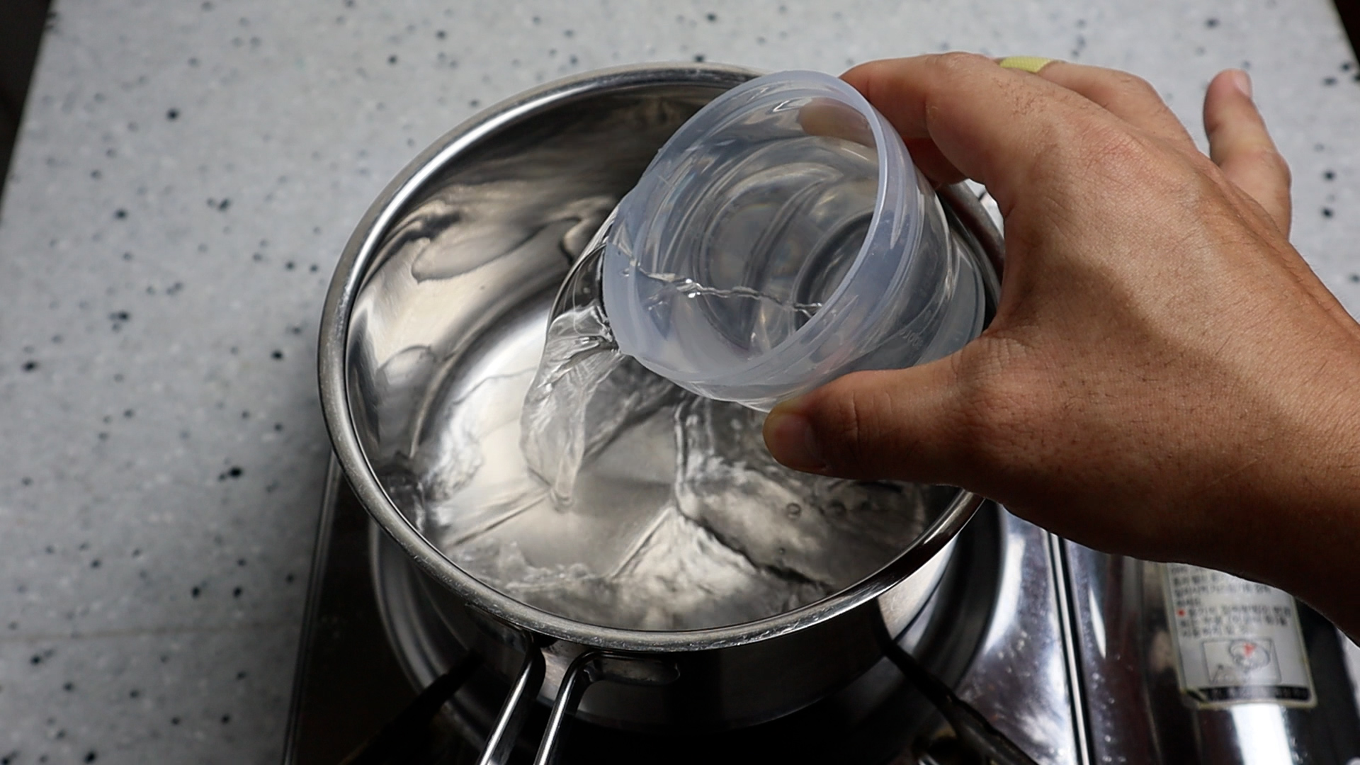 2. 물은 설명서에 적힌 양에서 200cc를 빼고 넣어주세요. 그 만큼 콩국물을 부어줄거에요. 신라면과 열라면은 물양이 달라서 확인하고 넣으셔야 합니다.