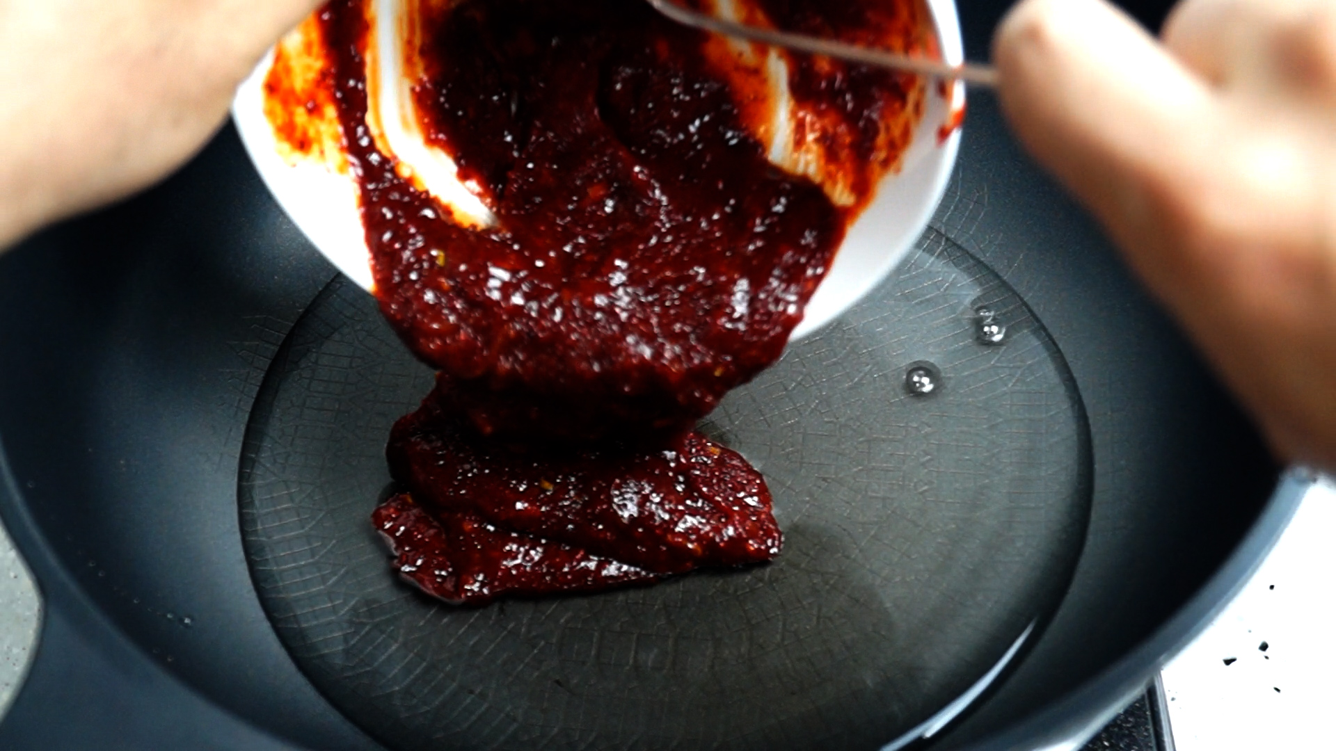 13. 웍이나 냄비에 물 150cc를 붓고 양념장을 전부 넣어주세요.