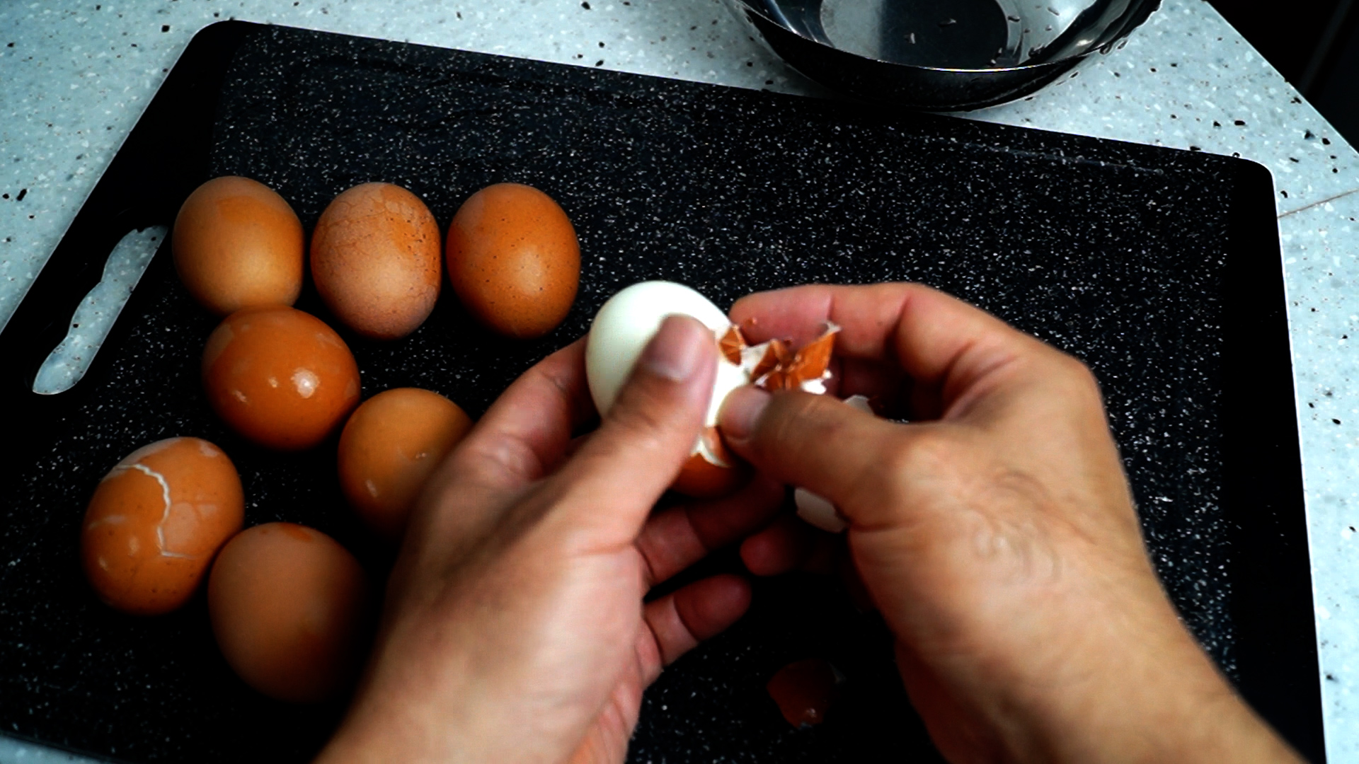 12. 계란 껍질은 다들 잘 까실수있으시죠^^ 껍질은 깐다음엔 계란 표면에 계란 껍질이 남아 있을수 있으니 물로 가볍게 세척해주세요.