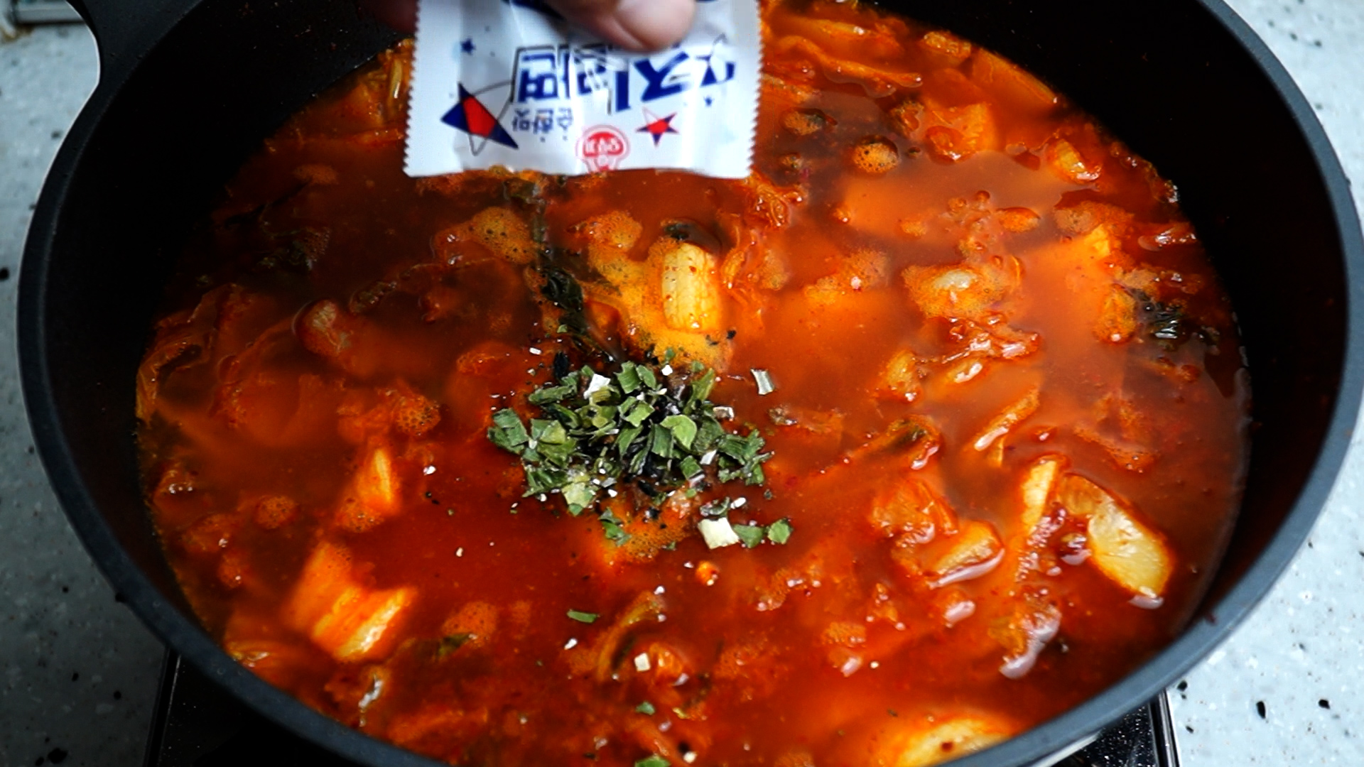 11. 소고기 다시다도 잊지말고 살짝 넣어주세요. 조미료가 조금 들어가긴 하지만 이정도 투자해서 맛있는 김치찌개 맛을 낼수 있고 사실 시켜먹는게 이것보다 더 불량할거에요^^
