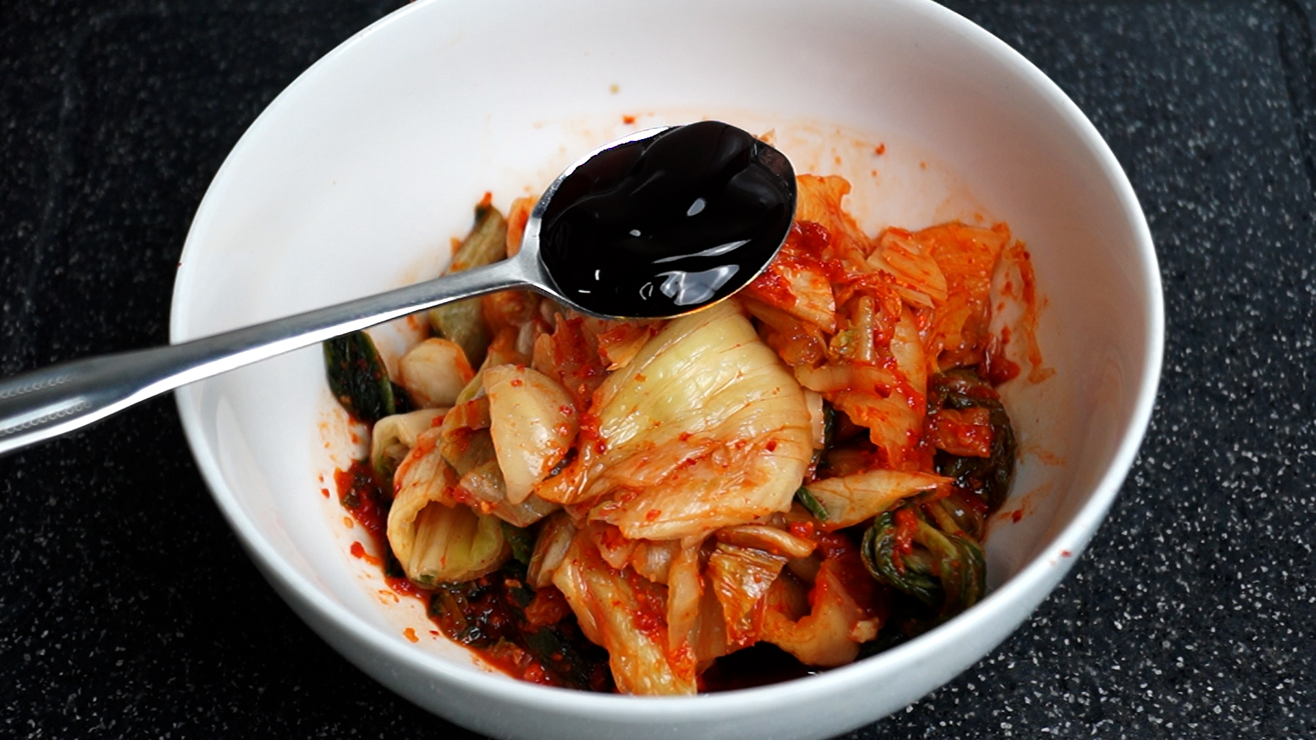 5. 굴소스도 잊지말고 넣어주세요. 덜익은 김치로는 낼수 없는 깊은 맛을 국물에 더해준답니다.