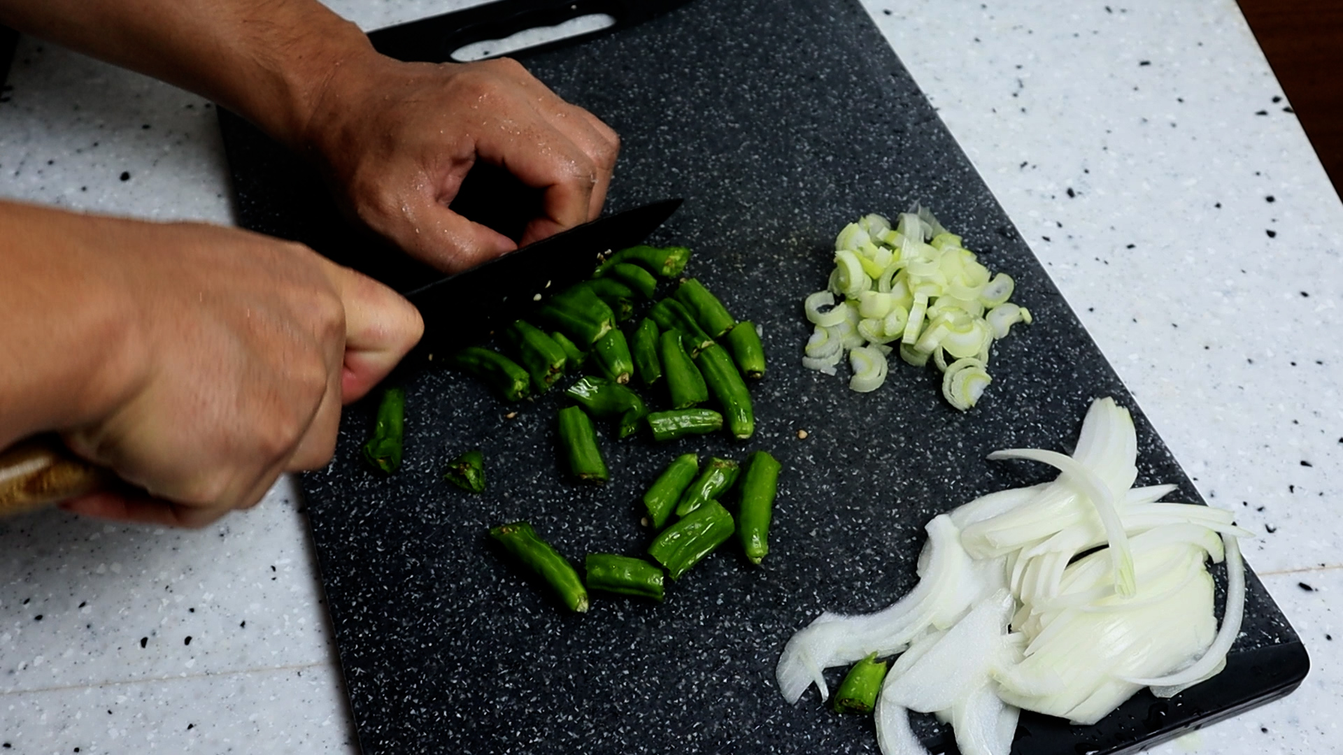 3. 꽈리고추는 대략 2~3등분으로 썰어주세요.