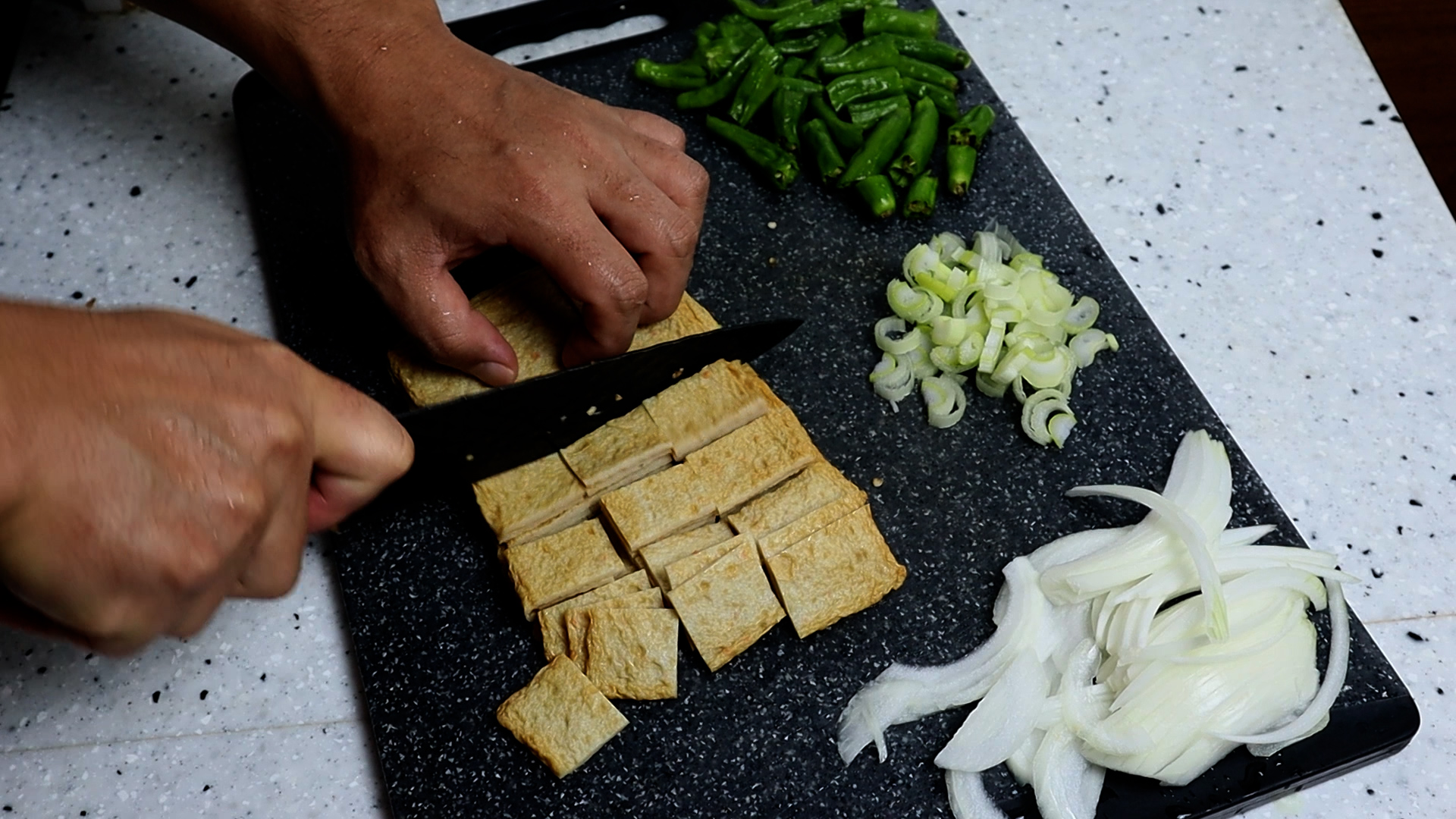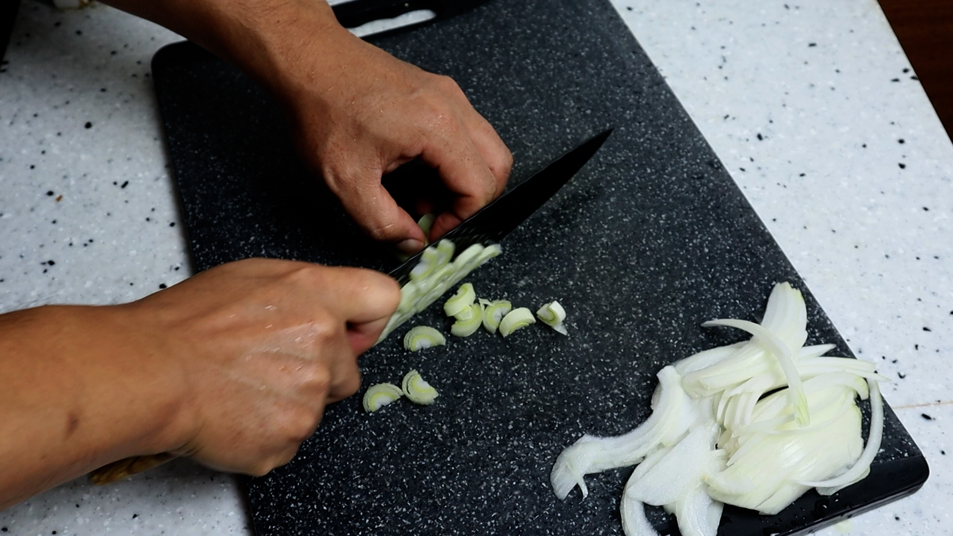 2. 대파는 흰대 위주로 썰어주세요. 찌개 할때는 초록대가 많은게 국물맛이 좋아지지만 볶을때는 흰대 비율을 높게 잡아 주셔야 파향이 너무 강하지 않으면서 맛있는 맛을 냅니다.