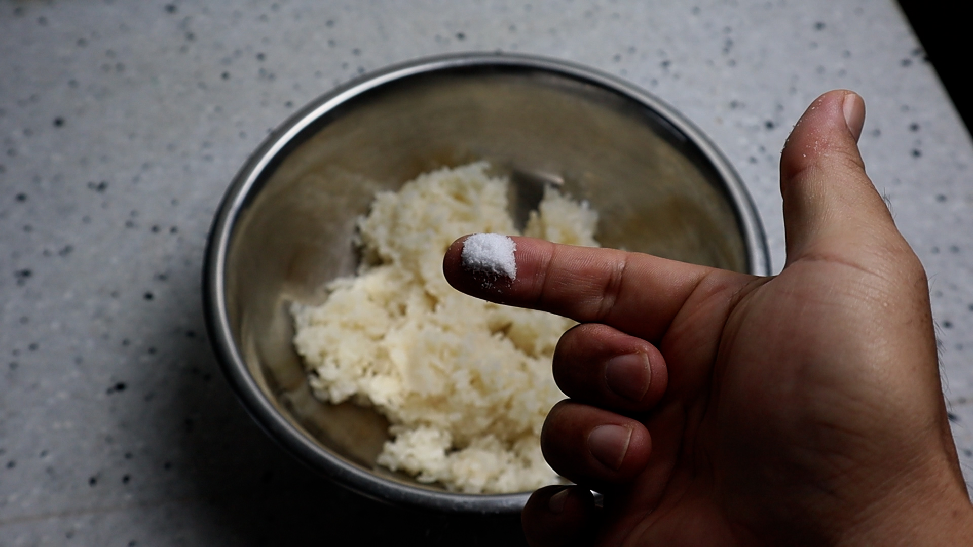 15. 밥 2공기 420g 에 맛소금을 이정도 집어서 2꼬집을 뿌려서 밥에 간을 해줍니다. 햇반 1개가 210g 정도 되니까 참고하세요.