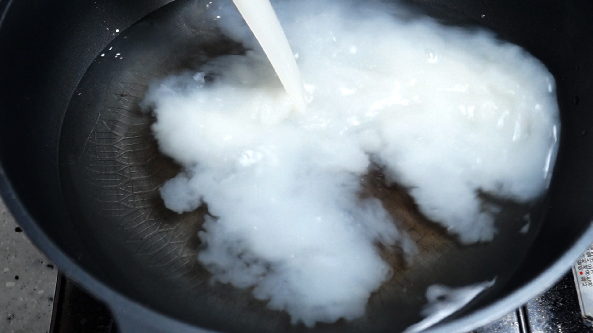 11. 물이 끓이 시작하면 순대를 전부 넣고 대략 1분 정도를 끓여주세요.