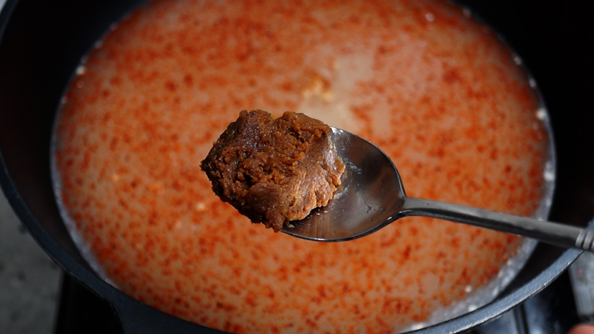 10. 불을 강불로 올리고 물이 끓는 동안 고추장과 된장을 찾아서 적당히 풀어주시면 좋습니다.