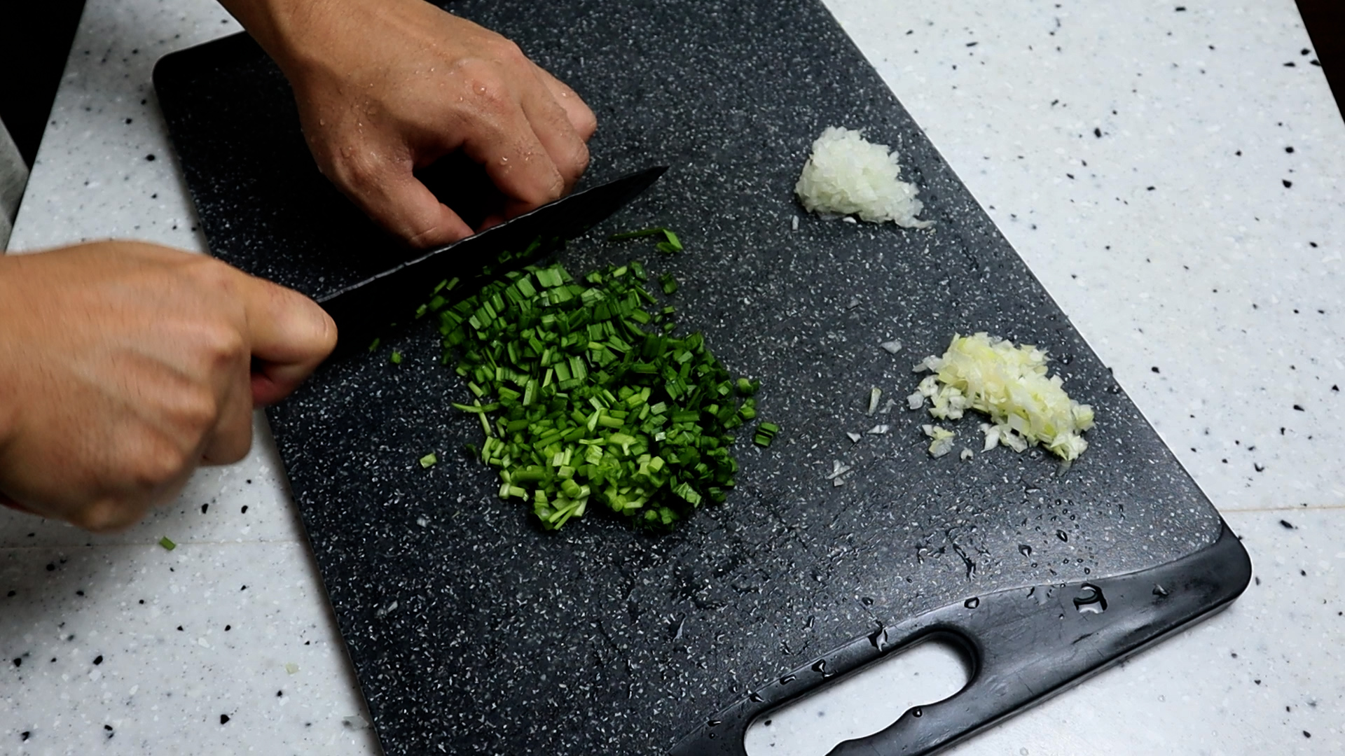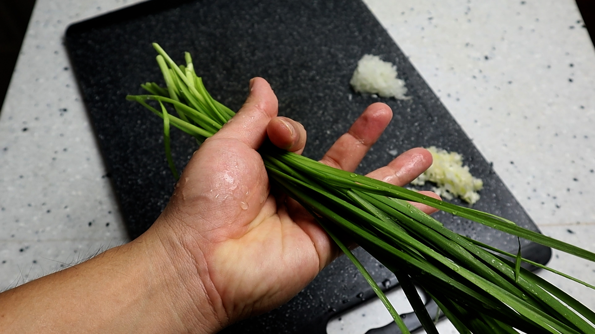 4. 부추는 대략 0.5cm 정도로 잘게잘게 잘라주세요.