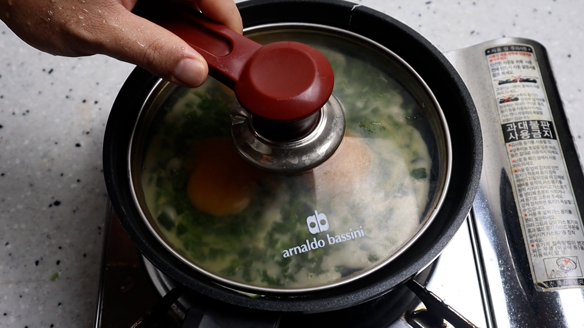 13. 약불을 유지하시고 뚜껑을 덮은 다음 2분 정도 가만히 두세요.