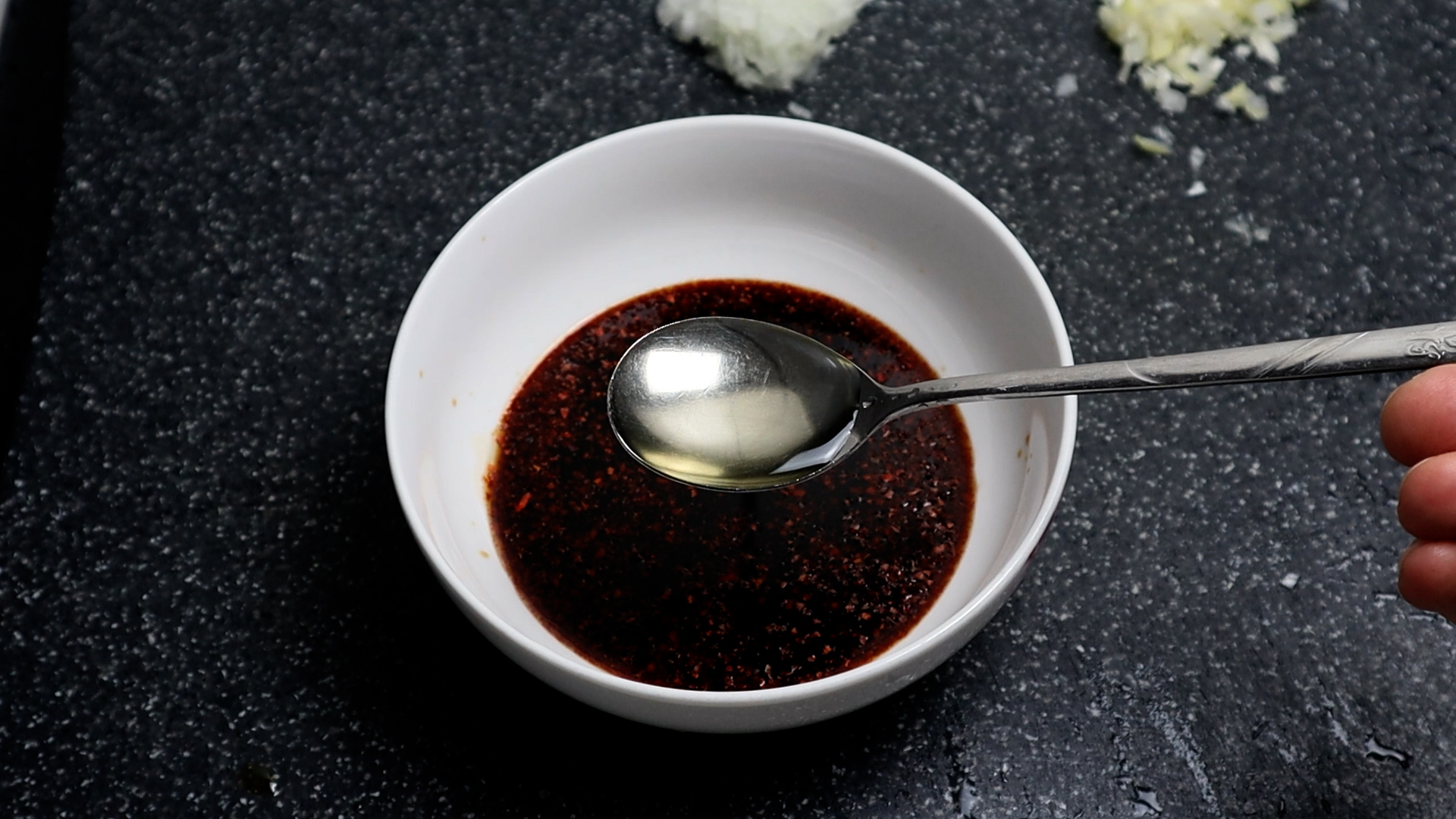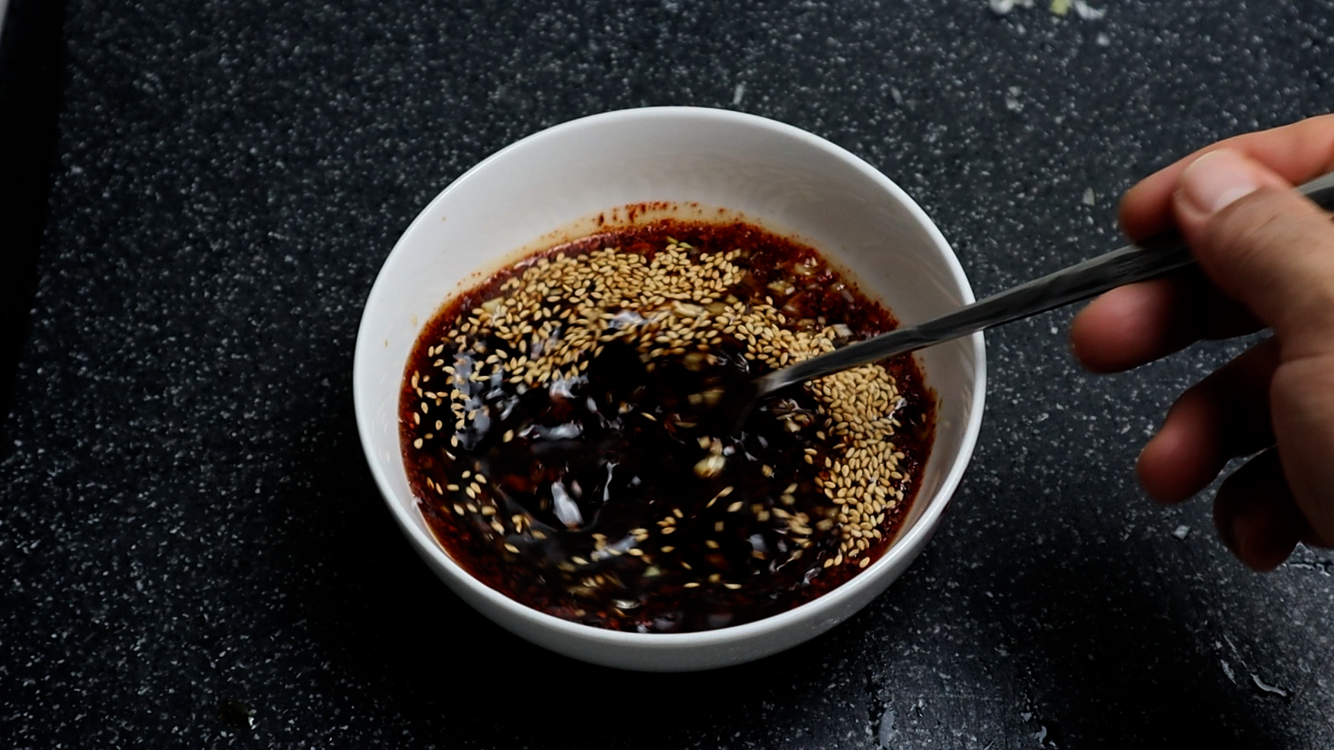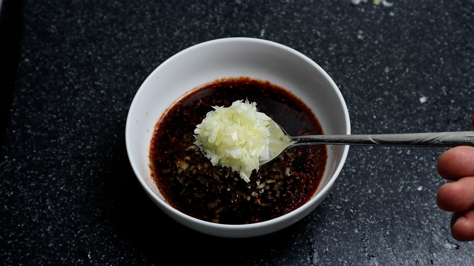 9. 그외 물, 식초, 간마늘, 통깨를 빼먹지 말고 넣으신 다음 다진양파와 대파를 전부 넣어주세요.