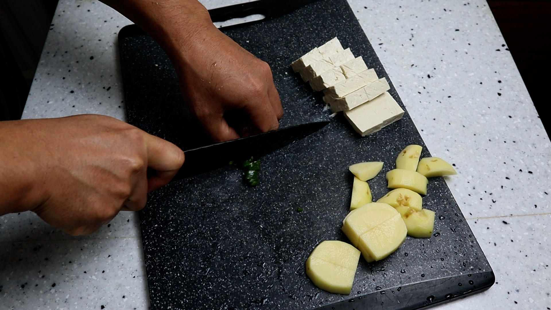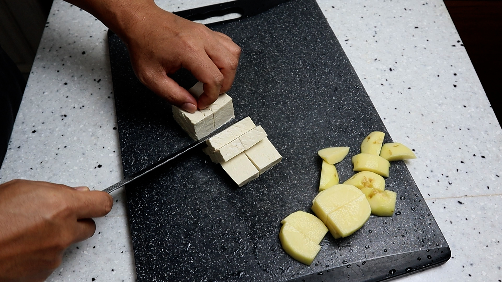 3. 두부는 단단한 부침용으로 준비해서 먹기좋은 크기로 잘라주세요. 찌개용을 부침용보다 수분이 많아서 찌개가 싱거워 지고 부서지기도 잘 부서져서 별로더라고요. 게다가 수분이 많은 만큼 콩 함량도 낫답니다.