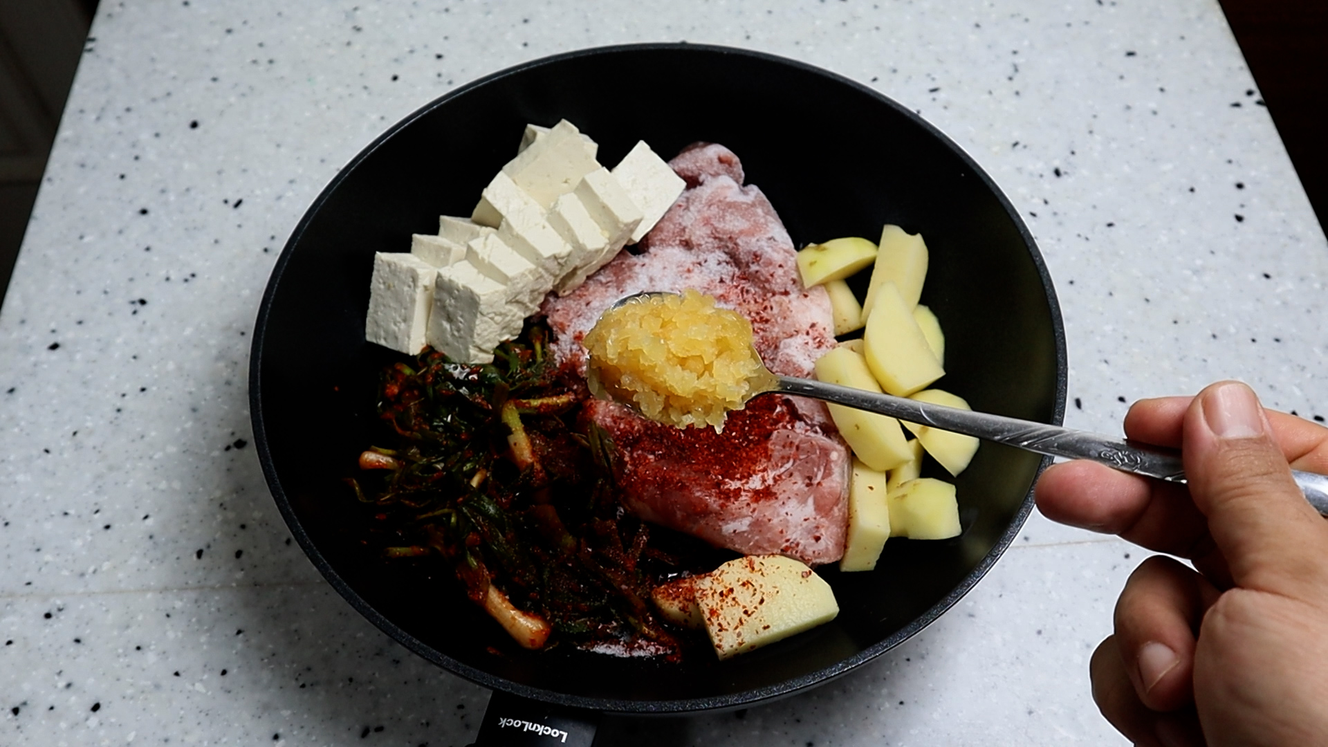 12. 칼로다진 마늘 보다는 간마늘을 넣어야 찌개 풍미가 더 좋아집니다.