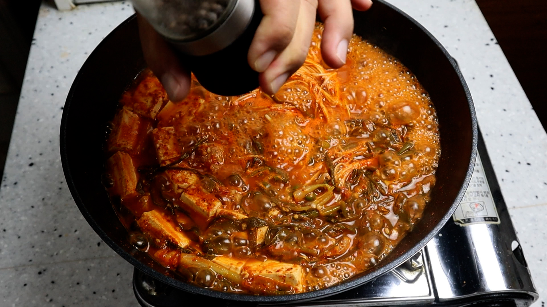 18. 마무리로 찌개엔 필수!! 후추가루를 뿌려주세요.