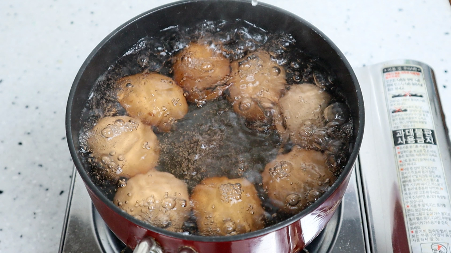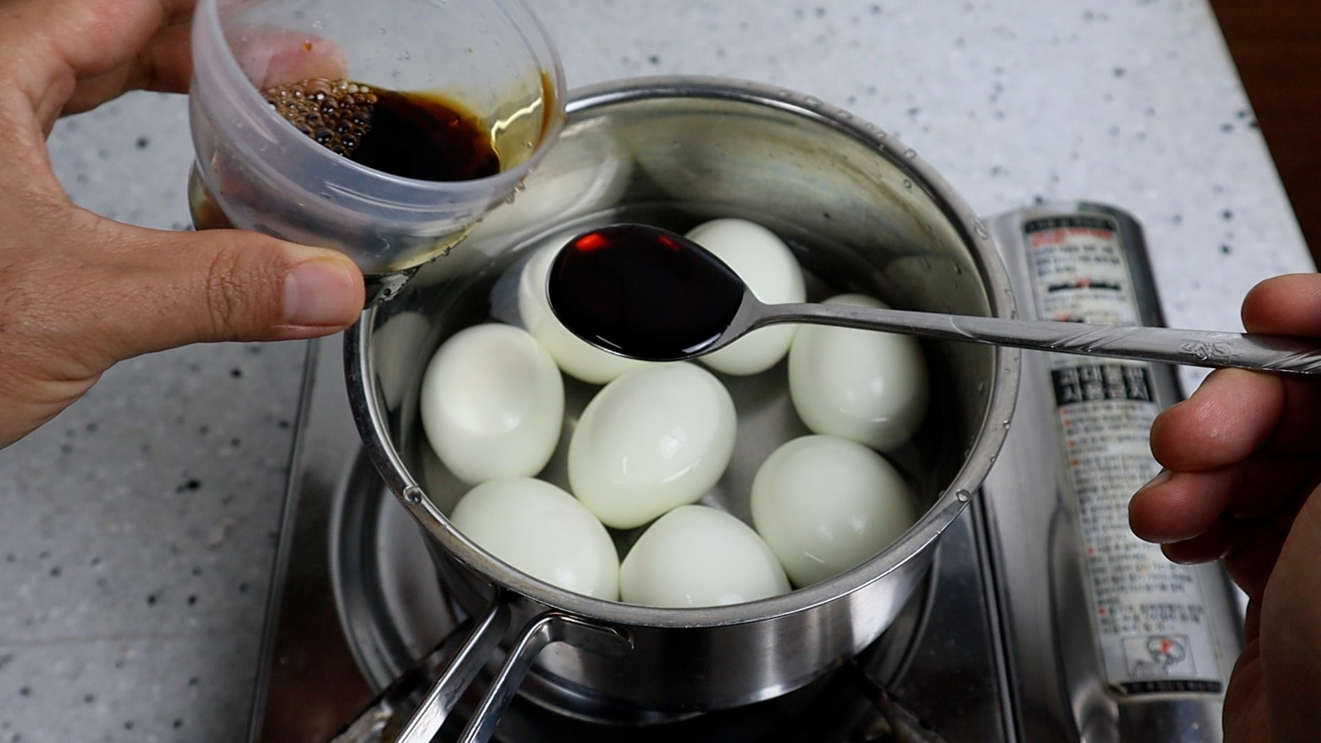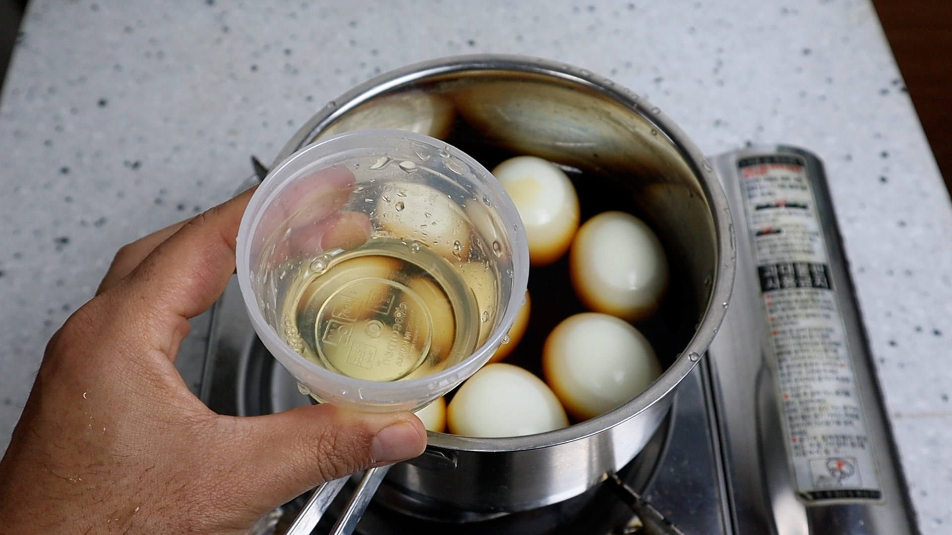 6. 깐 계란을 냄비에 넣고 물을 부어주세요.