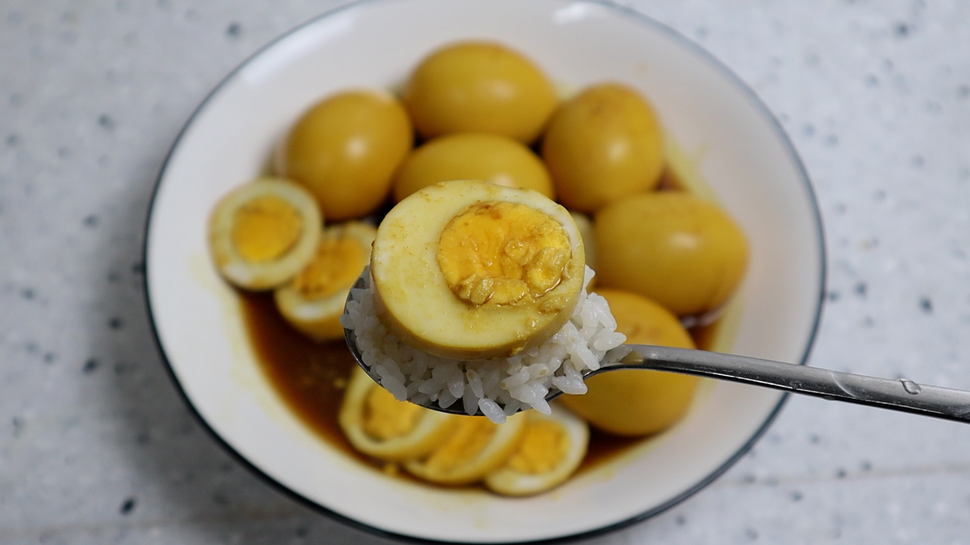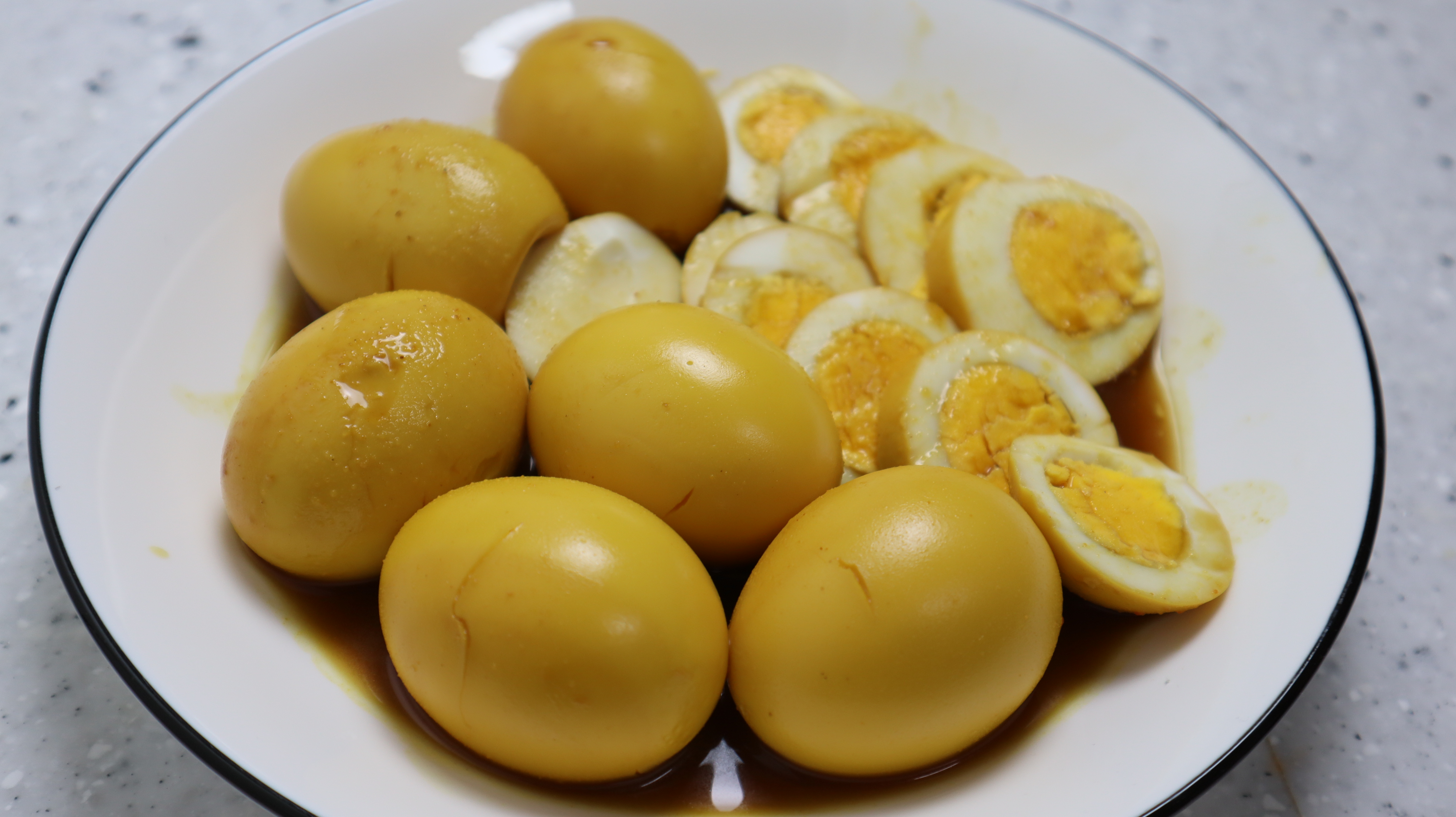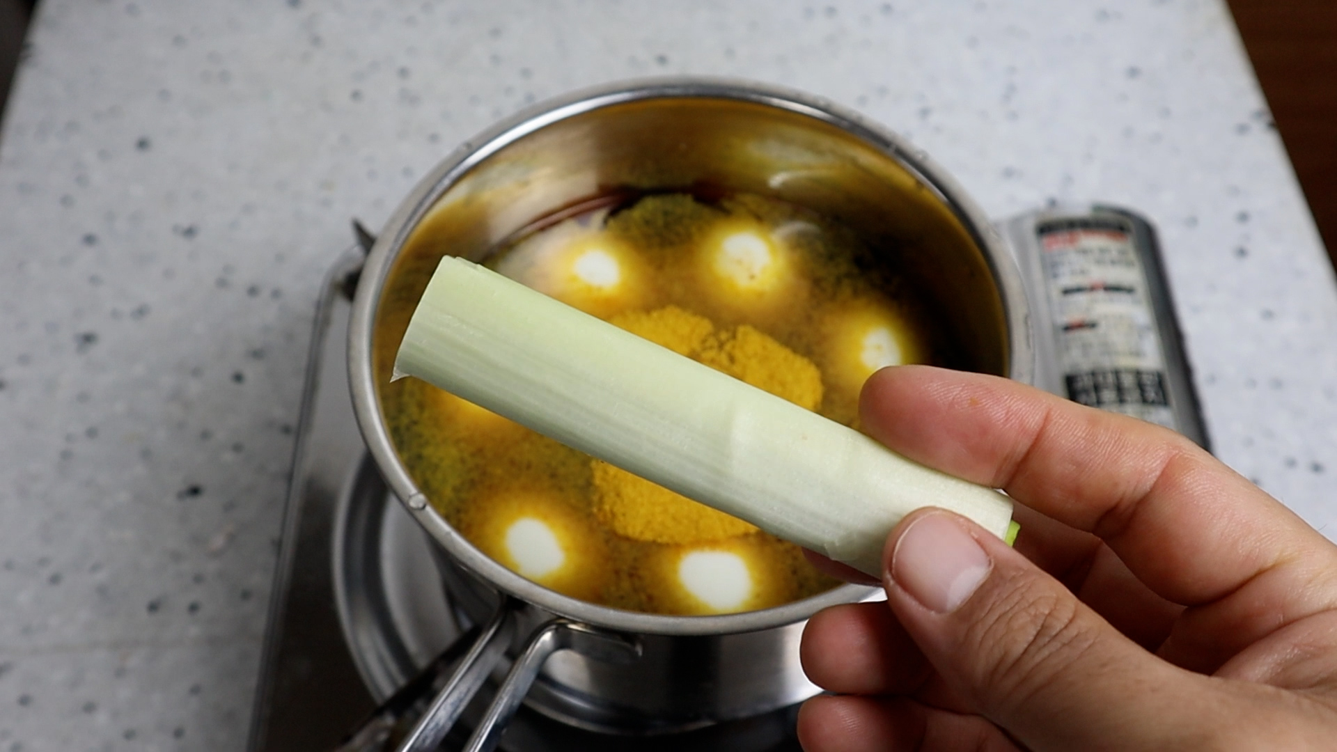 14. 7분 삶은 달걀은 이렇게 노란 카레빛 물들고 맛있는 향이 솔솔솔 날거에요.