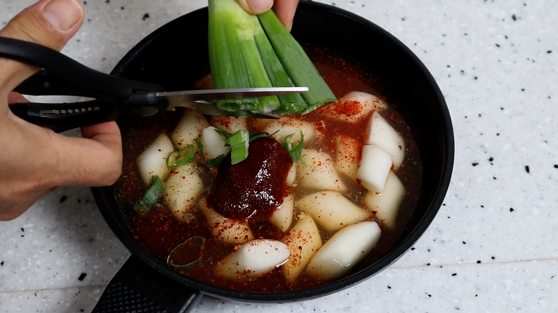 11. 떡볶이에 사용하는 대파는 초록대를 적당히 섞어주는게 양념의 풍미를 확 살려주더라고요~ 흰대 초록대 반반 섞어 넣어주세요.