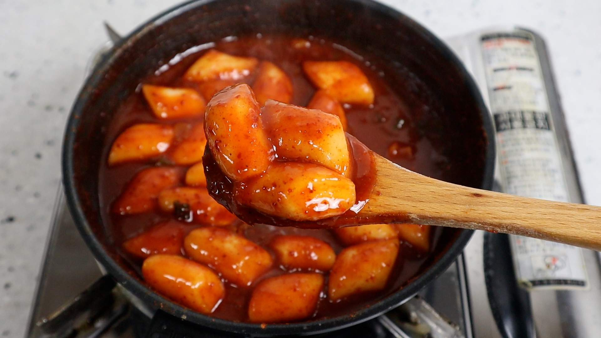 16. 딱봐야 양념이 진득하게 졸여진것 처럼 끓여 주시면 맛있는 1인분 떡볶이 완성!