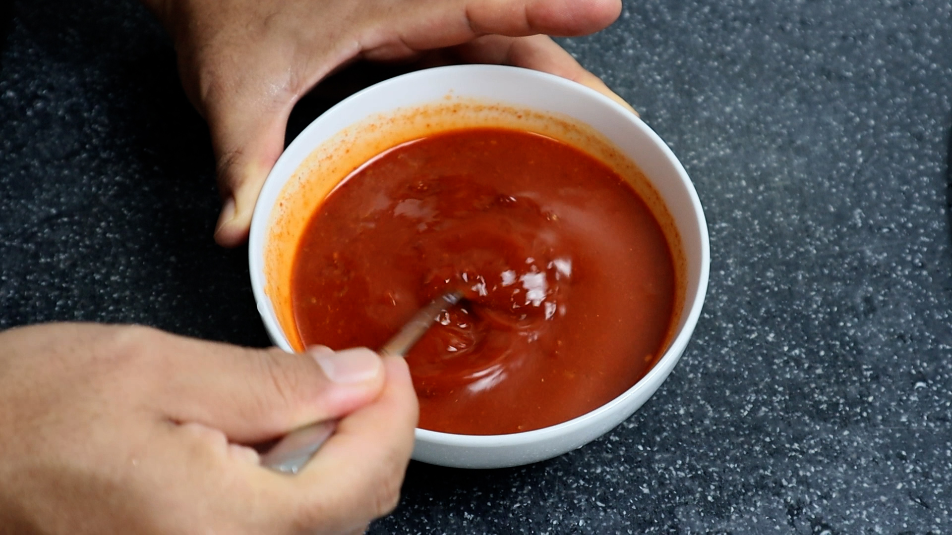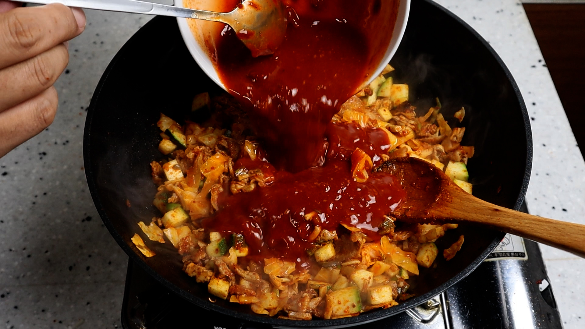 20. 양념을 전부다 부어주세요.
