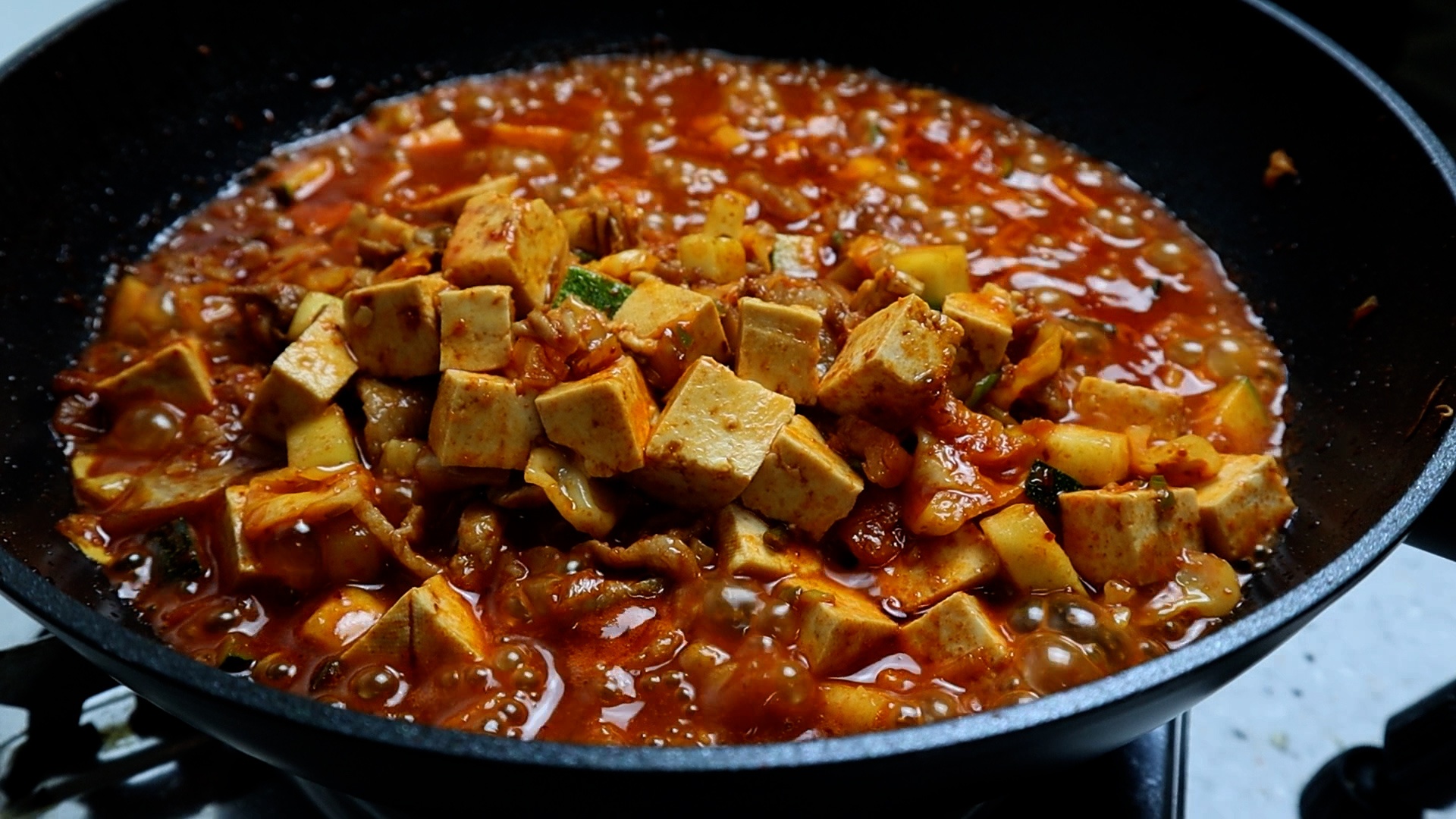 15. 두부는 단단한 부침용으로 1~1.5cm 크기로 깍둑 썰어주세요.