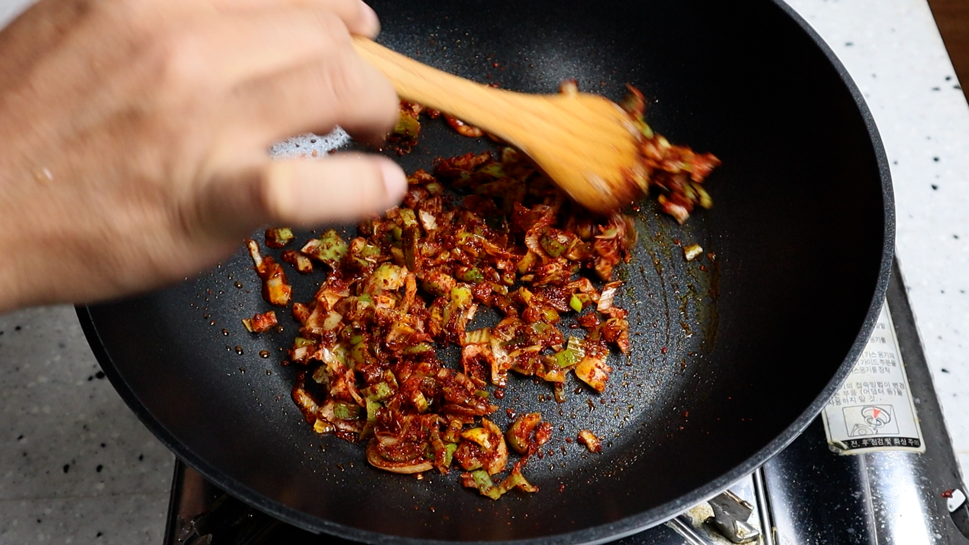 21. 골고루 섞으면서 3~4분을 볶아주세요.