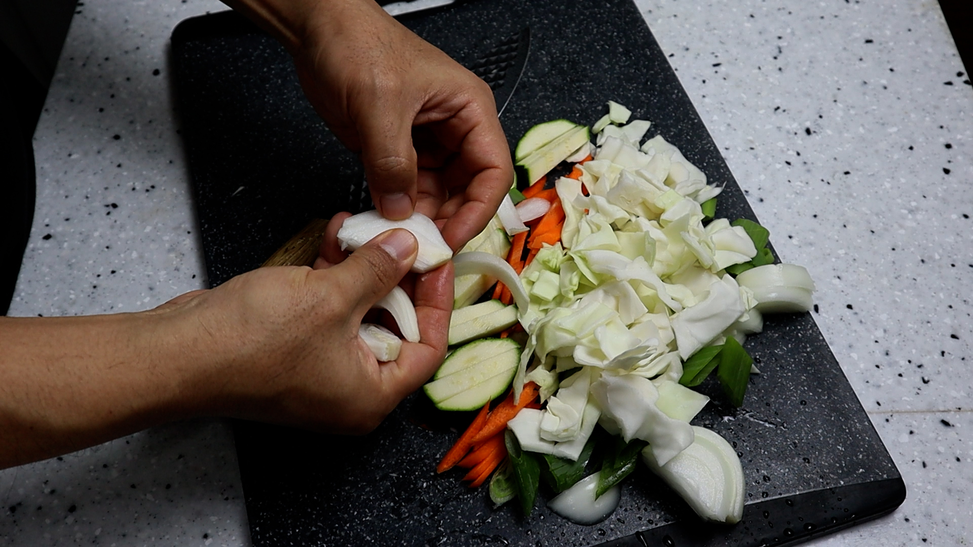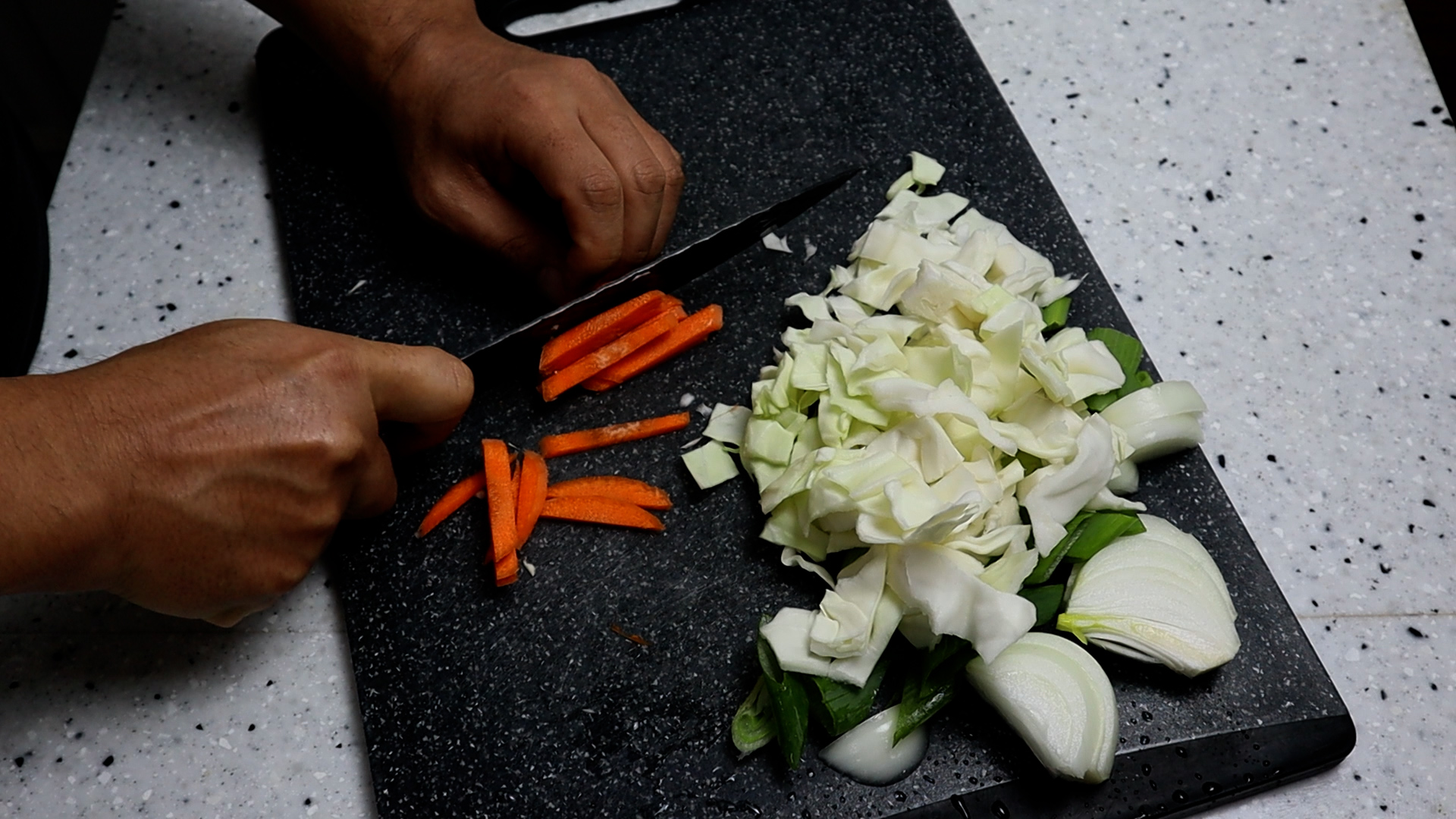 1. 양파는 1cm가 조금 안되게 채를 썰어주세요. 어릴땐 양파 다 골라내고 먹었는데 지금은 양파까지 맛있어서 삭삭 긁어먹는 아재가 되었네요 ㅎㅎ