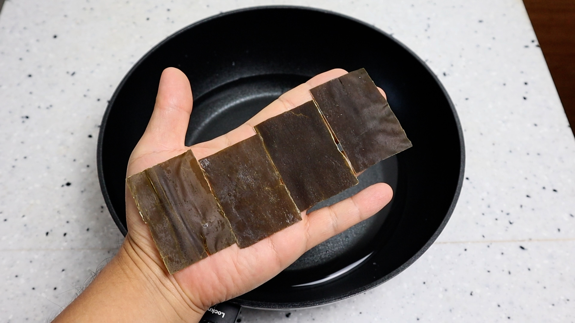 2. 다시마를 손바닥을 덮을 정도 크기를 준비해서 넣어주세요. 다시마가 들어가면 감칠맛이 끝내준답니다.