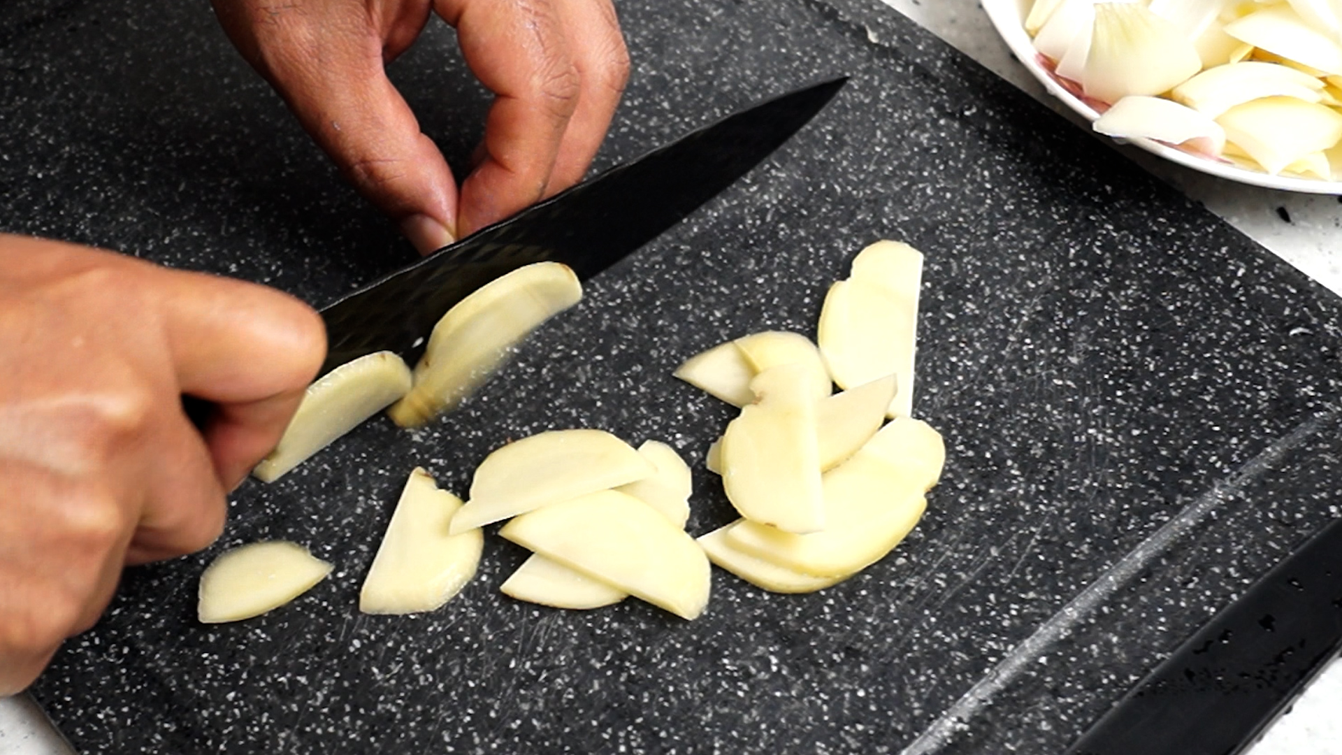 15. 감자는 2~3mm 두께로 얇게 썰어야 볶을때 같이 익힐수 있습니다. 너무 두꺼우면 안익을수도 있어요.