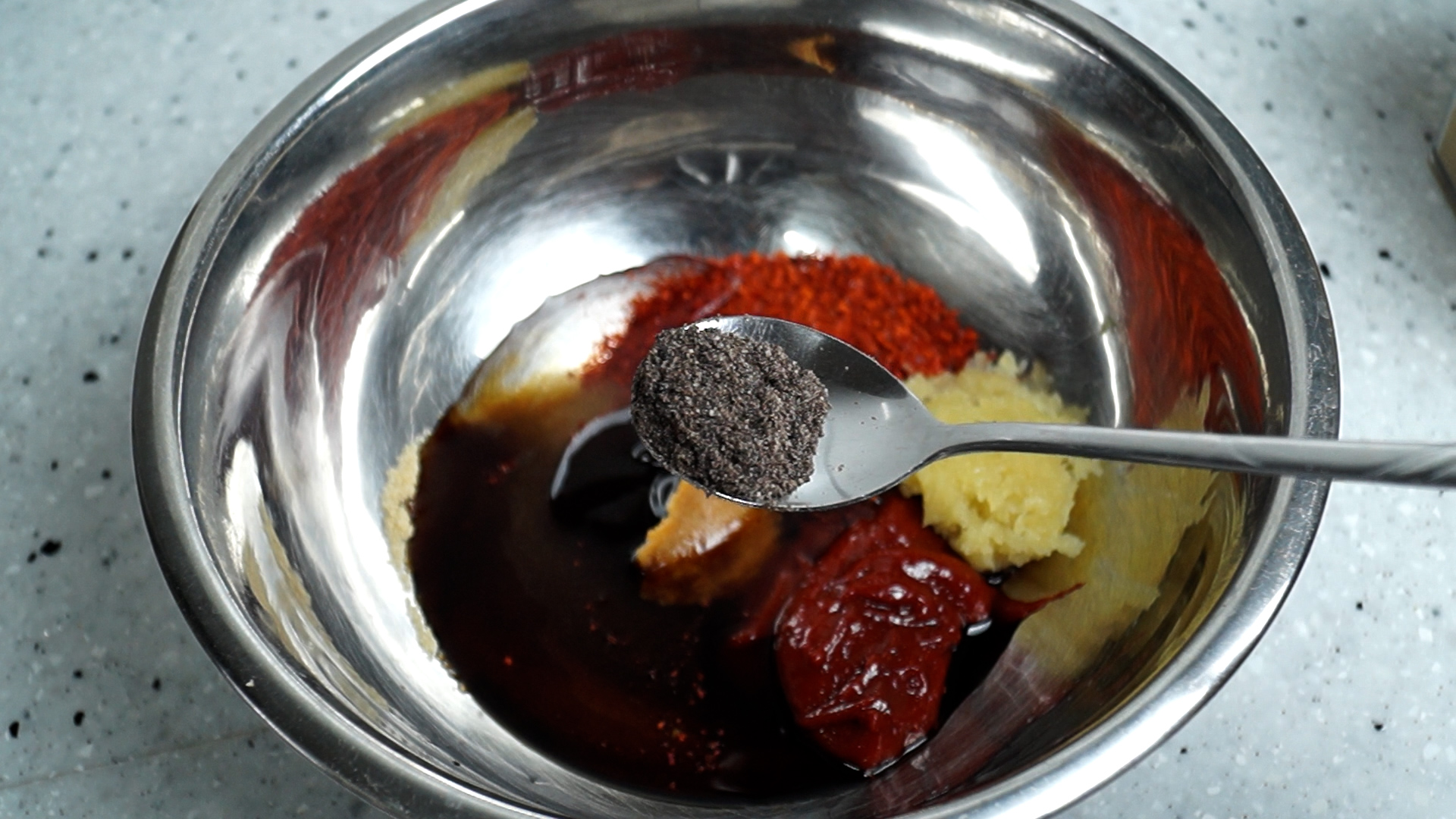 4. 저희집은 조금 특이하게 된장을 넣어서 양념에 깊고 진한맛을 살린답니다. 살짝만 넣어보세요.