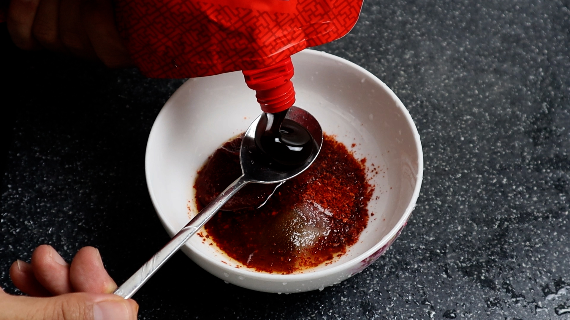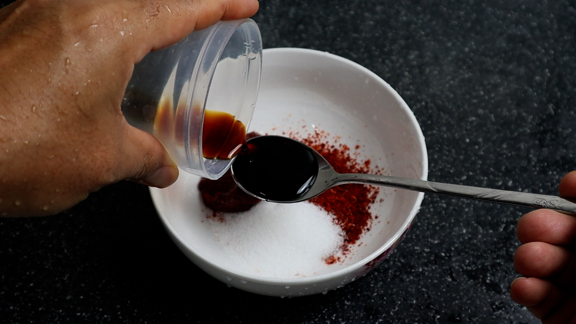 8. 물과 후춧가루를 넣은 다음 골고루 섞어주세요.