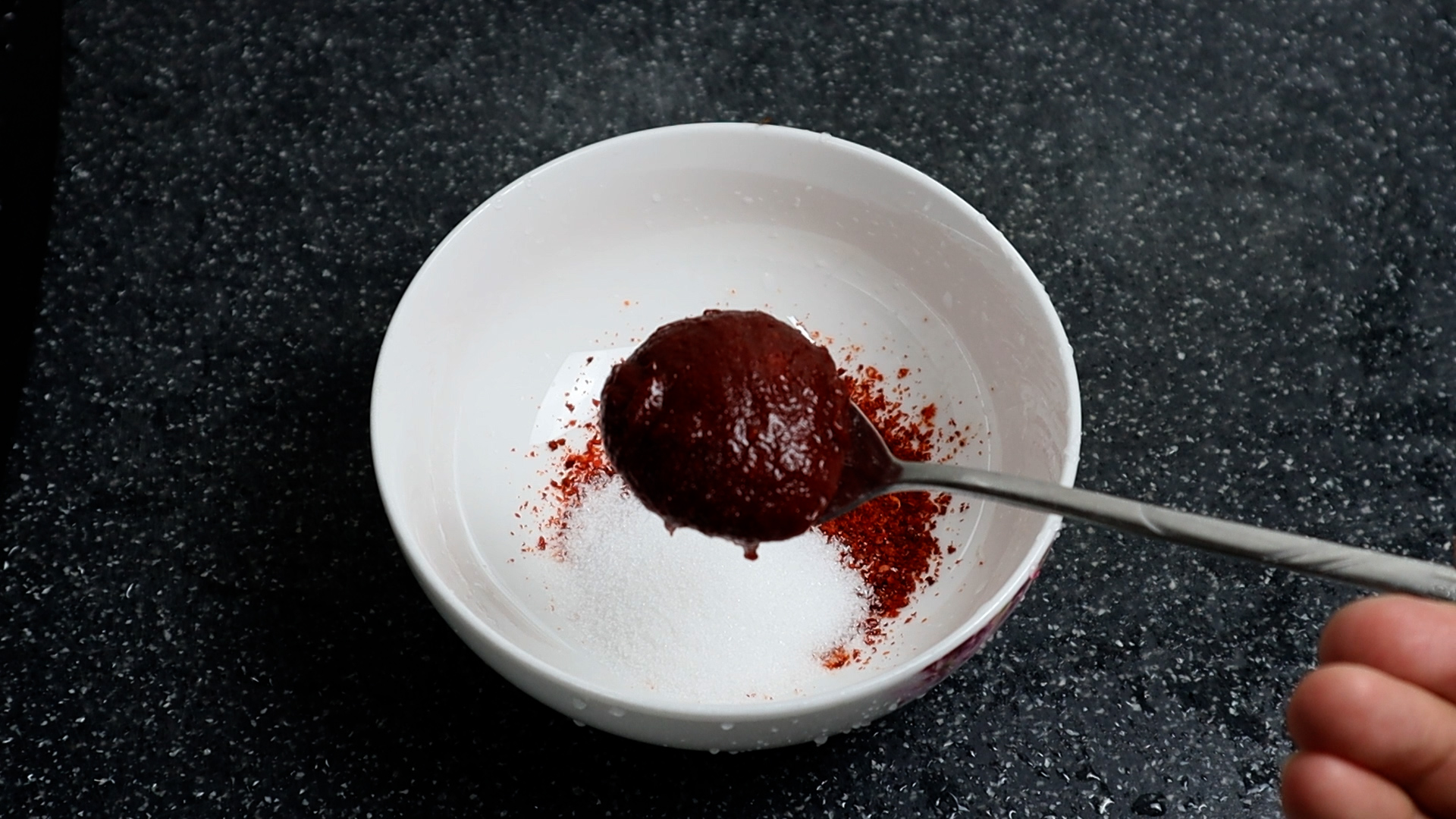 3. 고추장은 너무 크게 퍼지 말고 적당히 퍼주세요.