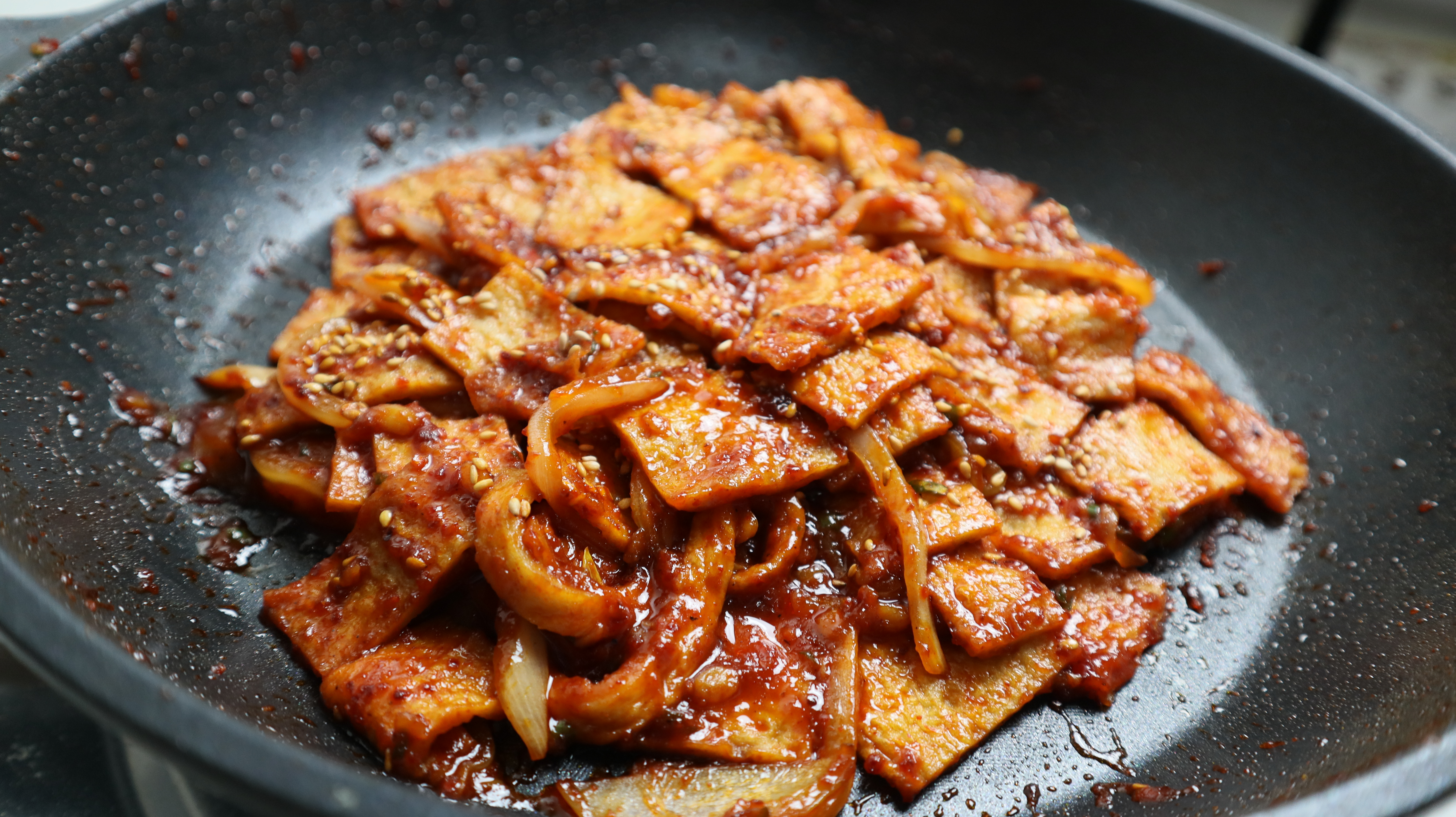 하지만 양념 조합만 잘하고 볶는 재료를 잘 조화시켜주면 식은 다음에 더 맛있다고 느껴지는 어묵볶음을 만들수 있답니다.