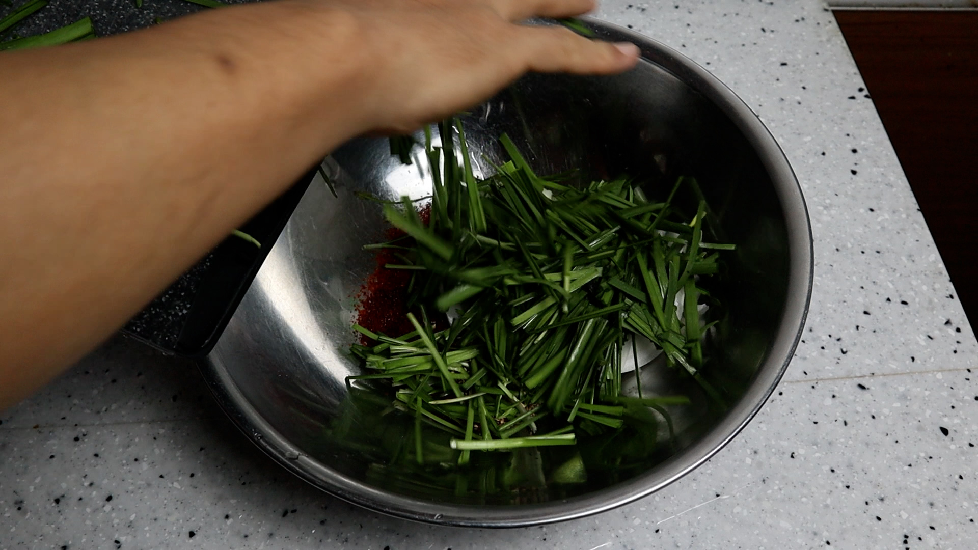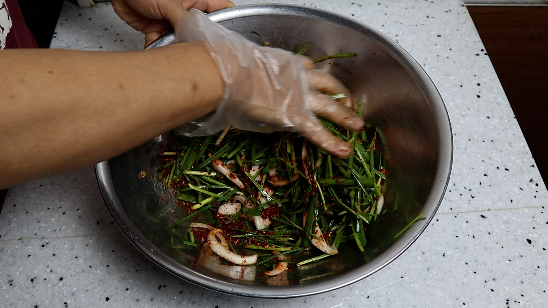 15. 너무 힘을 주지말고 슬렁슬렁 무쳐서 부추와 양파가 뭉개지지 않게 해주세요.