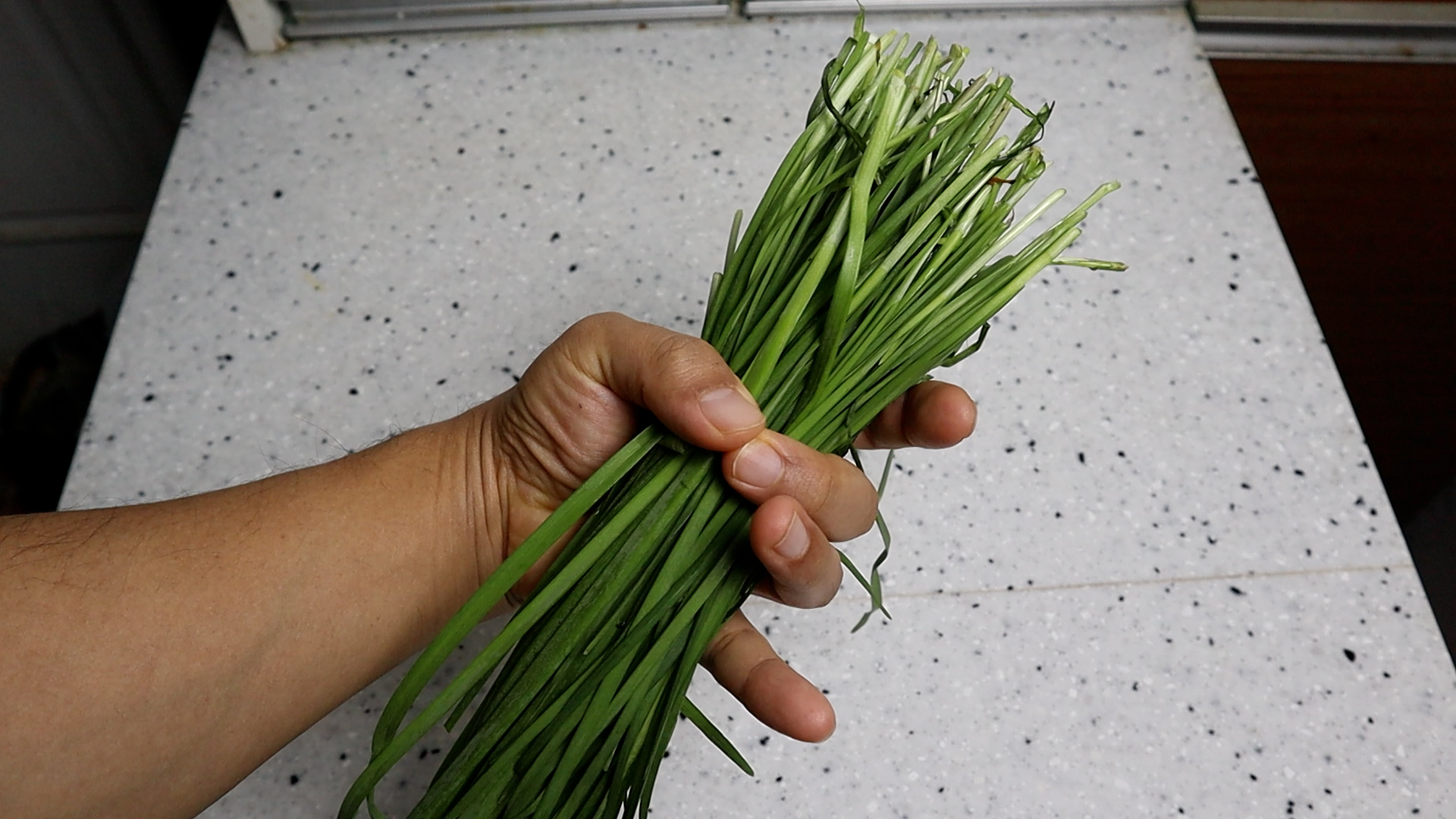 1. 부추 1주먹을 쥐면 대략 120g 정도가 나옵니다. 부추길이 따라 두께따라 약간의 차이는 있지만 저울이 없으시면 이정도 잡아서 준비하시면 됩니다.