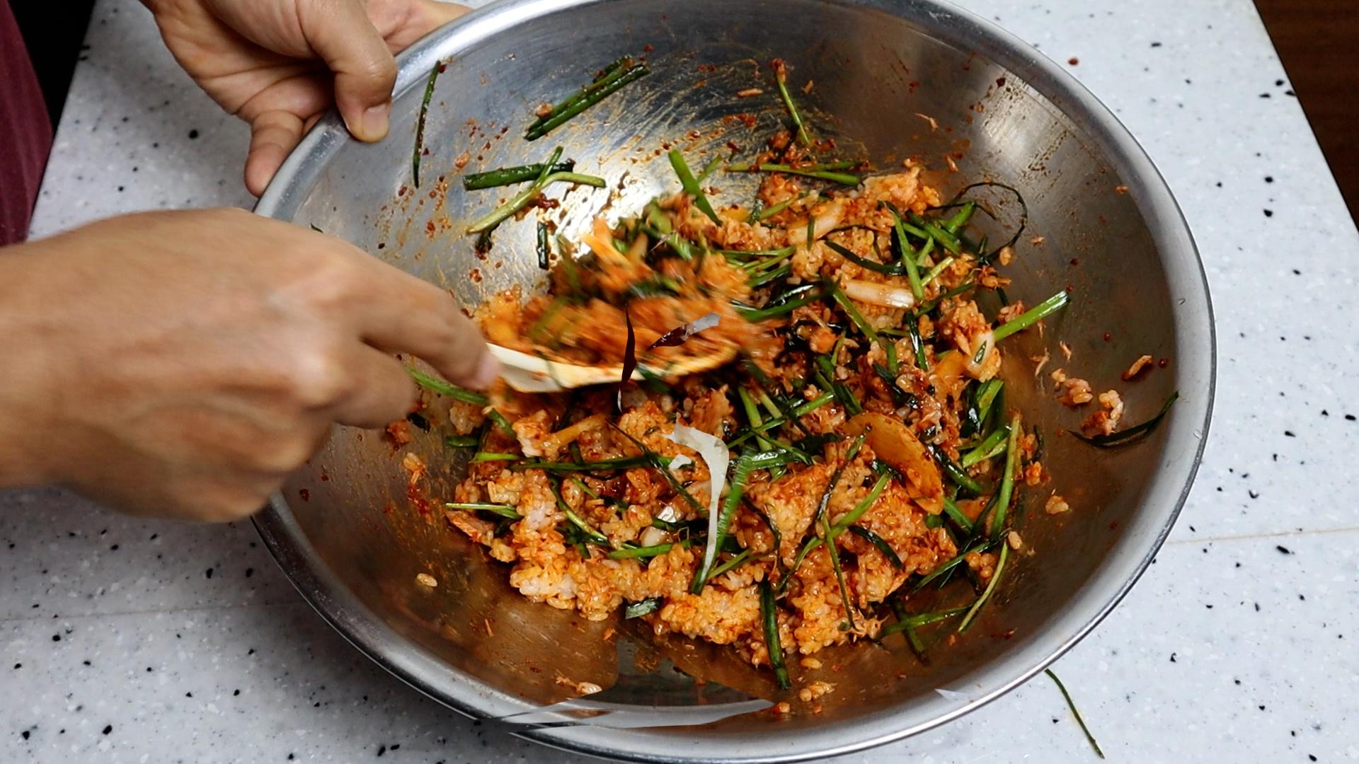21. 양념이 고루고루 베이게 슬렁슬렁 비벼주세요.