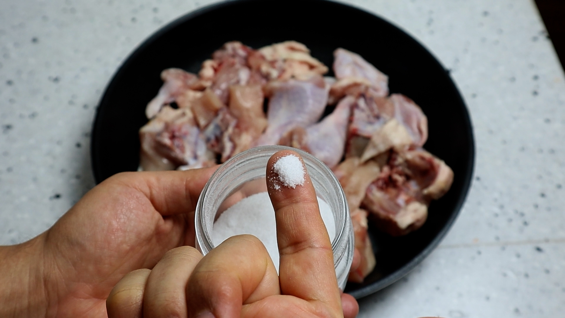 14. 닭에 맛소금을 요정도 잡아서 3꼬집 골고루 뿌려서 20분간 밑간을 해주세요.