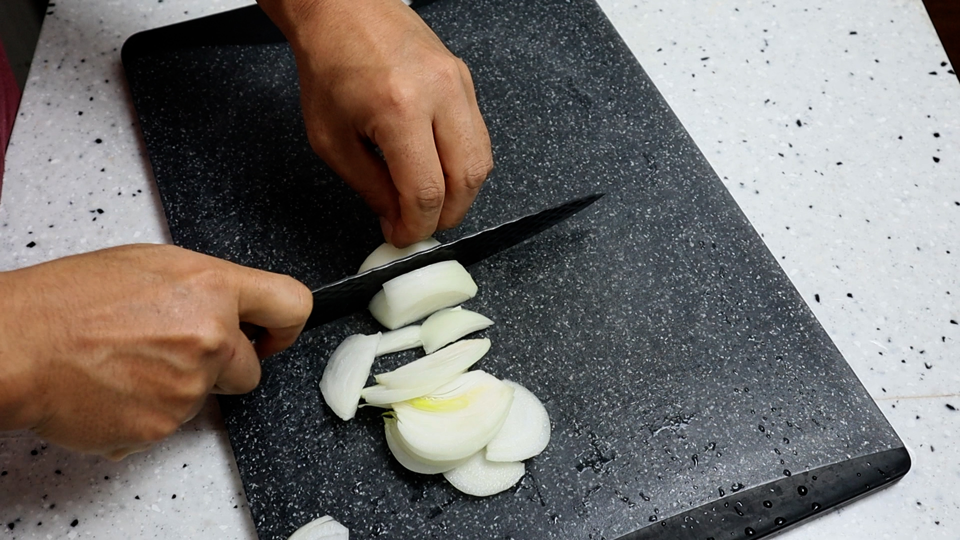 15. 밑간하는동안 야채를 썰어주세요. 양파는 1cm 정도로 채를 썰어주세요.