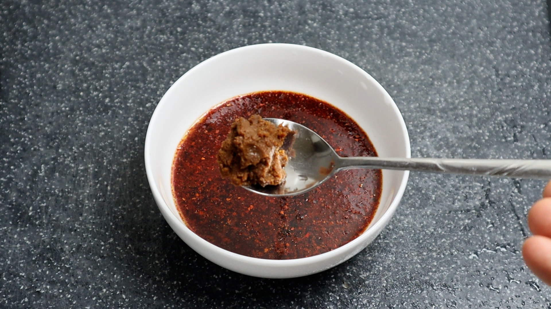 8. 된장이 살짝 들어가면 양념이 훨씬 깊고 진해집니다.