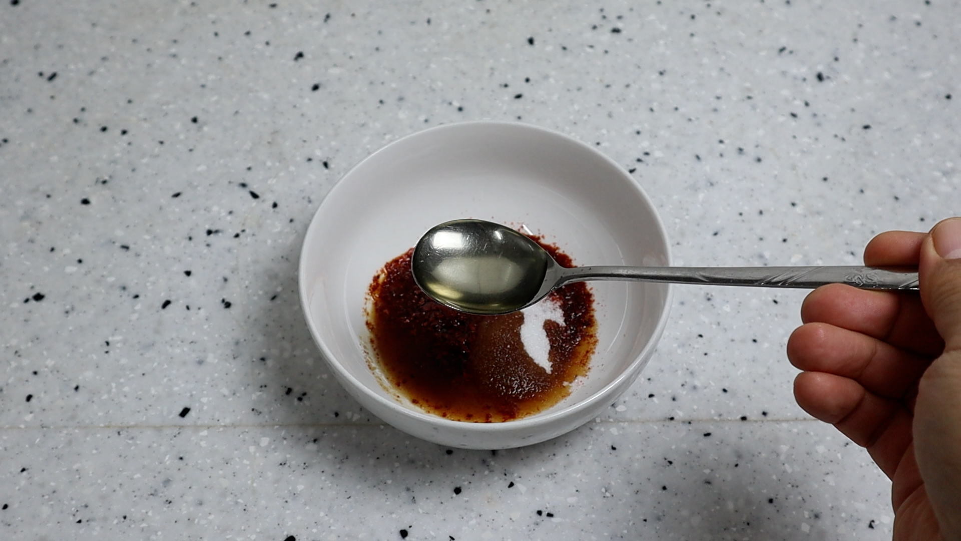 10. 참기름과 후추가루 맹물도 전부 넣고 골고루 잘 섞어서 된장 고추장 덩어리를 완전히 풀어주세요.