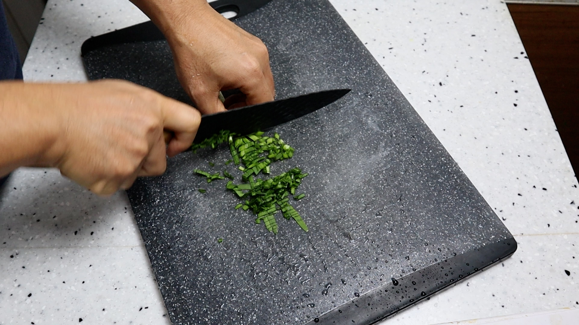 8. 부추는 0.5cm 이하로 잘라주세요. 부추가 없으시면 쪽파를 초록 부분만 사용해주시면 됩니다.