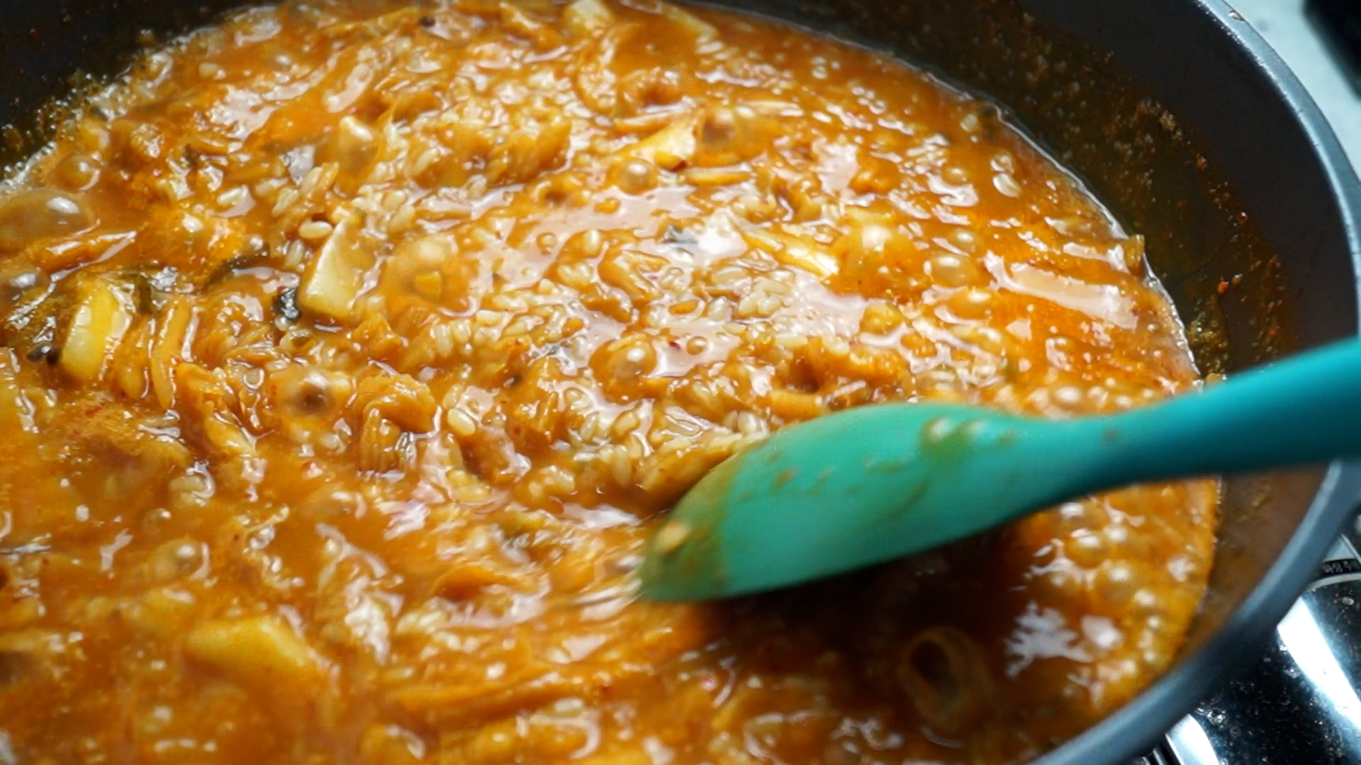 9. 4~5분을 볶으면 김치볶음 처럼 맛있는 색감과 향을 내고 있을거에요.