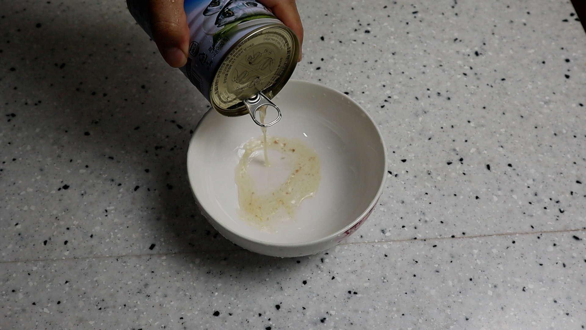 5. 고등어 300g 짜리 1캔을 국물을 따라내주세요. 국물은 나중에 조금 사용할거니 버리지는 마세요.