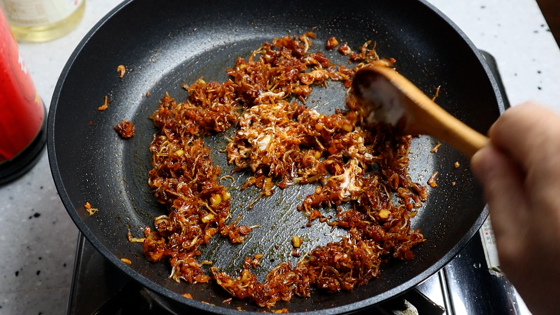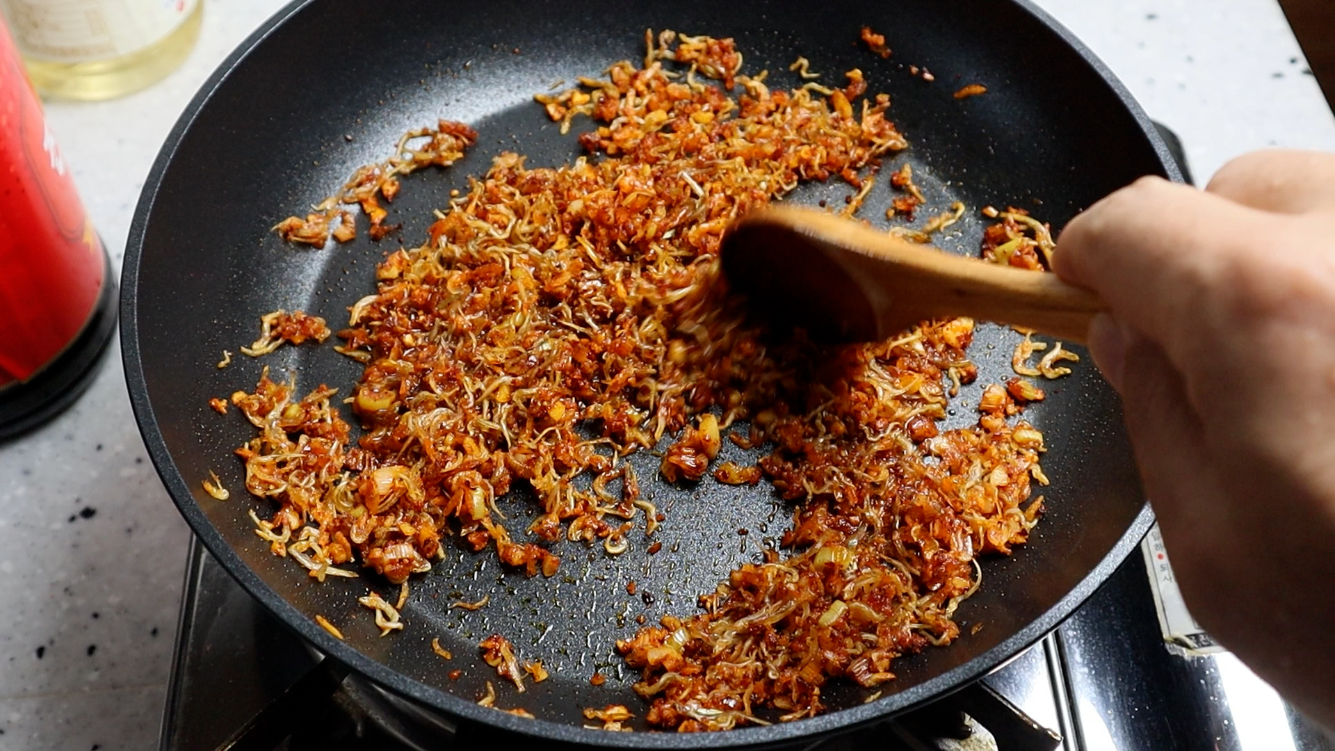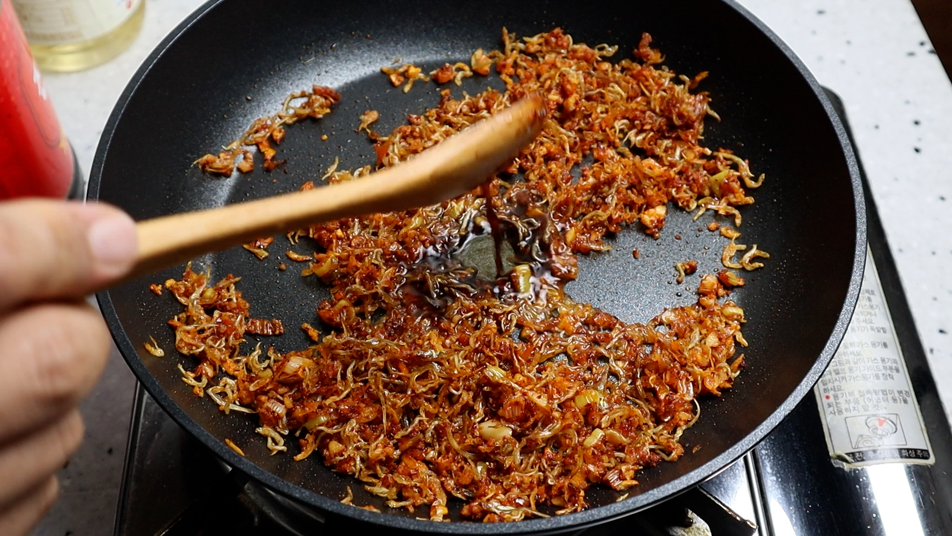 6. 약불 그대로 유지하고 1분 30초 정도 볶아주세요.