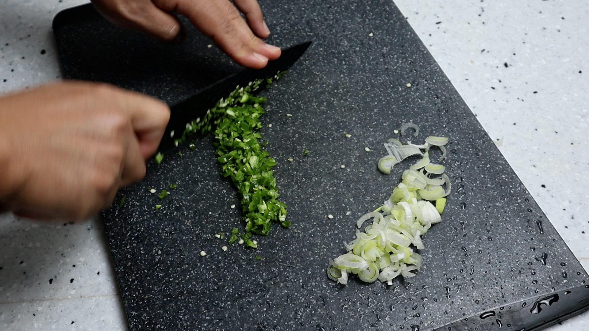 2. 땡초 3개를 잘게 다져주세요. 씨는 기호에 따라 적당히 제거해 주셔도 됩니다.
