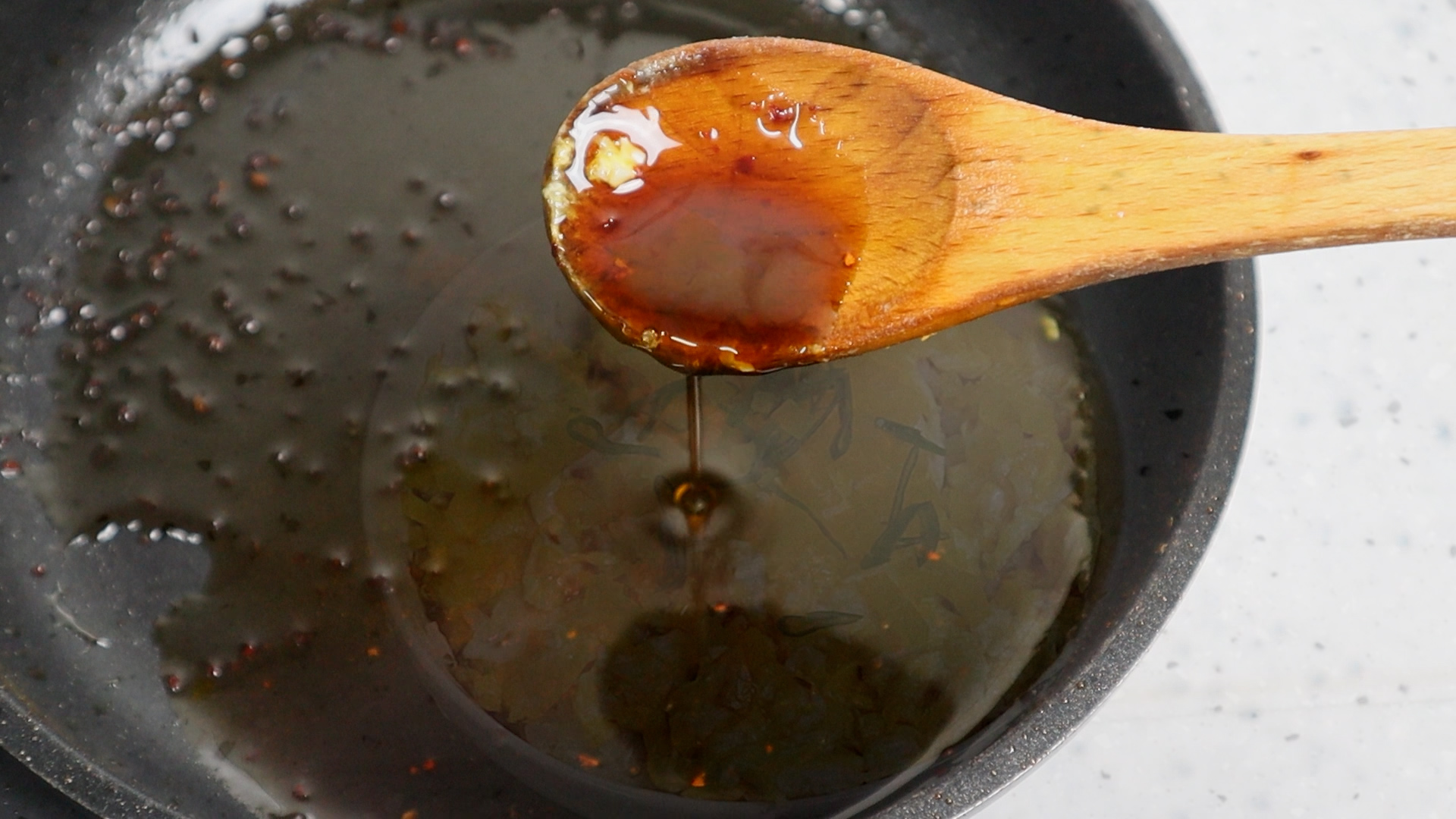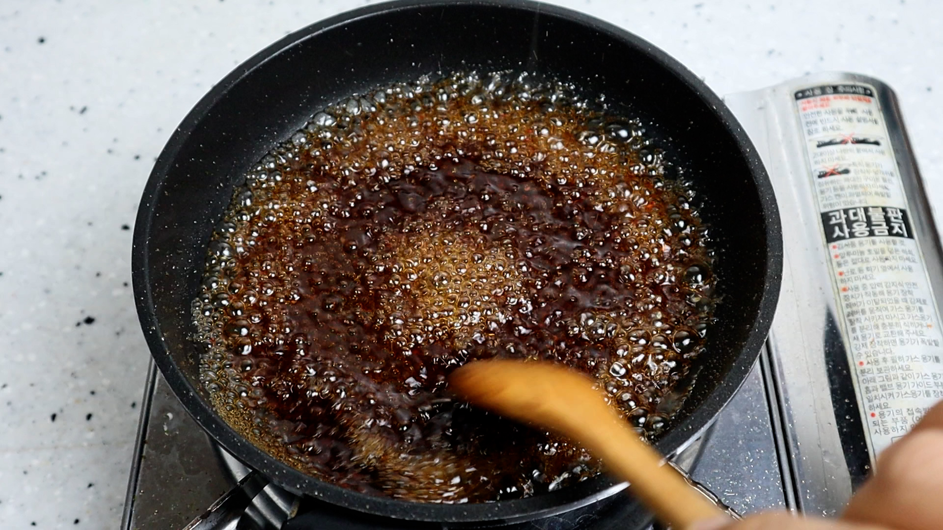 10. 강불에 부글부글 끓기시작하면 딱!! 1분만 끓여주세요. 끓인 양념이 살짝 식으면 어느정도 점도가 생겨 있을거에요. 너무 물 같으면 끓이는 시간을 조금 늘여주세요.