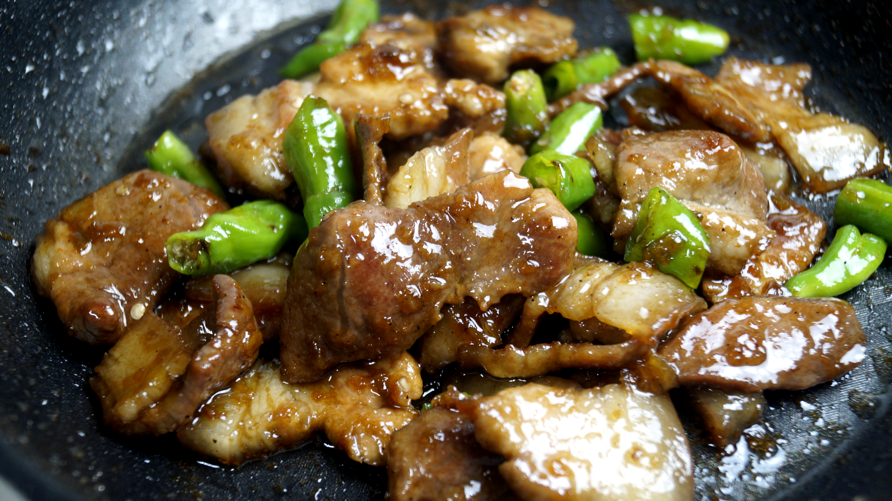 11. 양념이 완전히 졸아들고 기름만 자글거릴때까지 볶아주다가 씻어서 썰어놓은 꽈리고추를 넣어주세요.