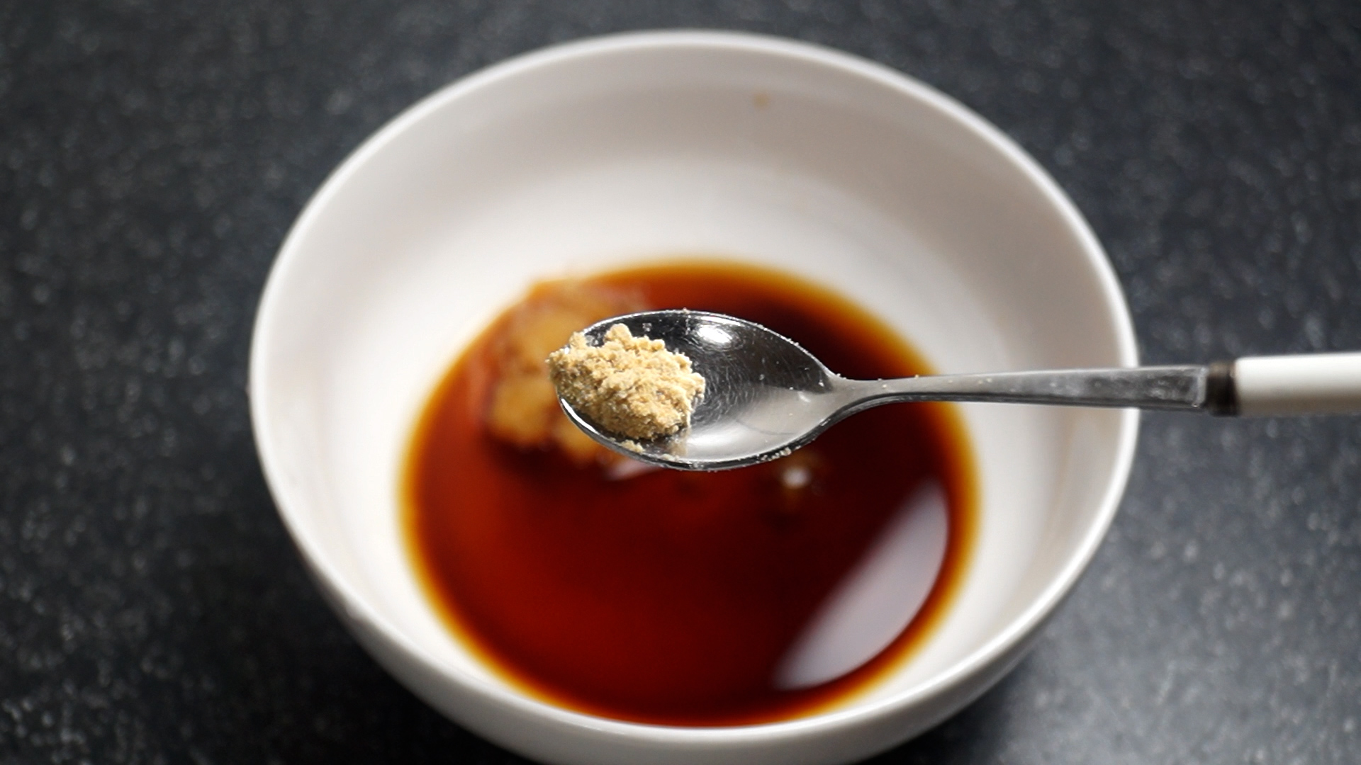 4. 돼지고기와 잘어울리는 생강가루를 1/3티스푼 또는 2꼬집 정도를 넣고 색감과 감칠맛 나는 짠맛 보태줄 굴소스 반스푼을 넣어주세요.