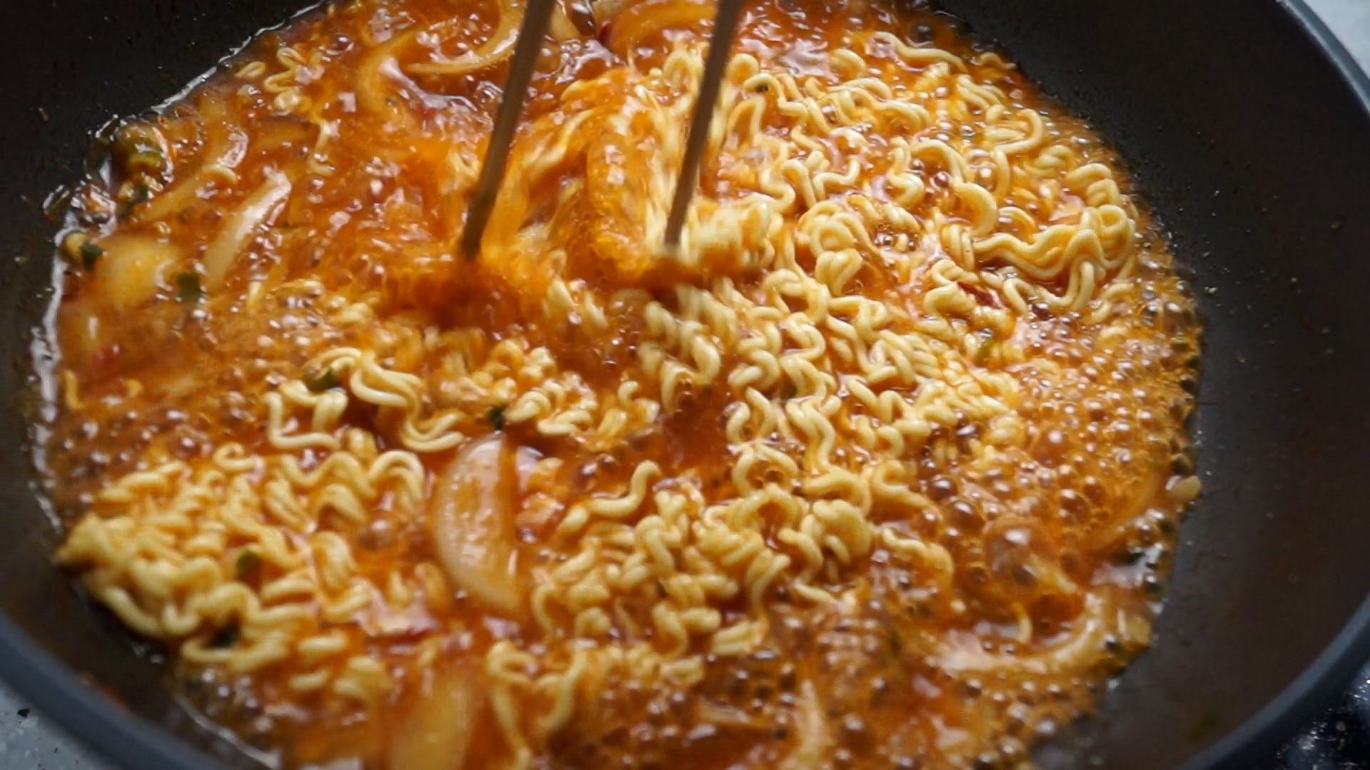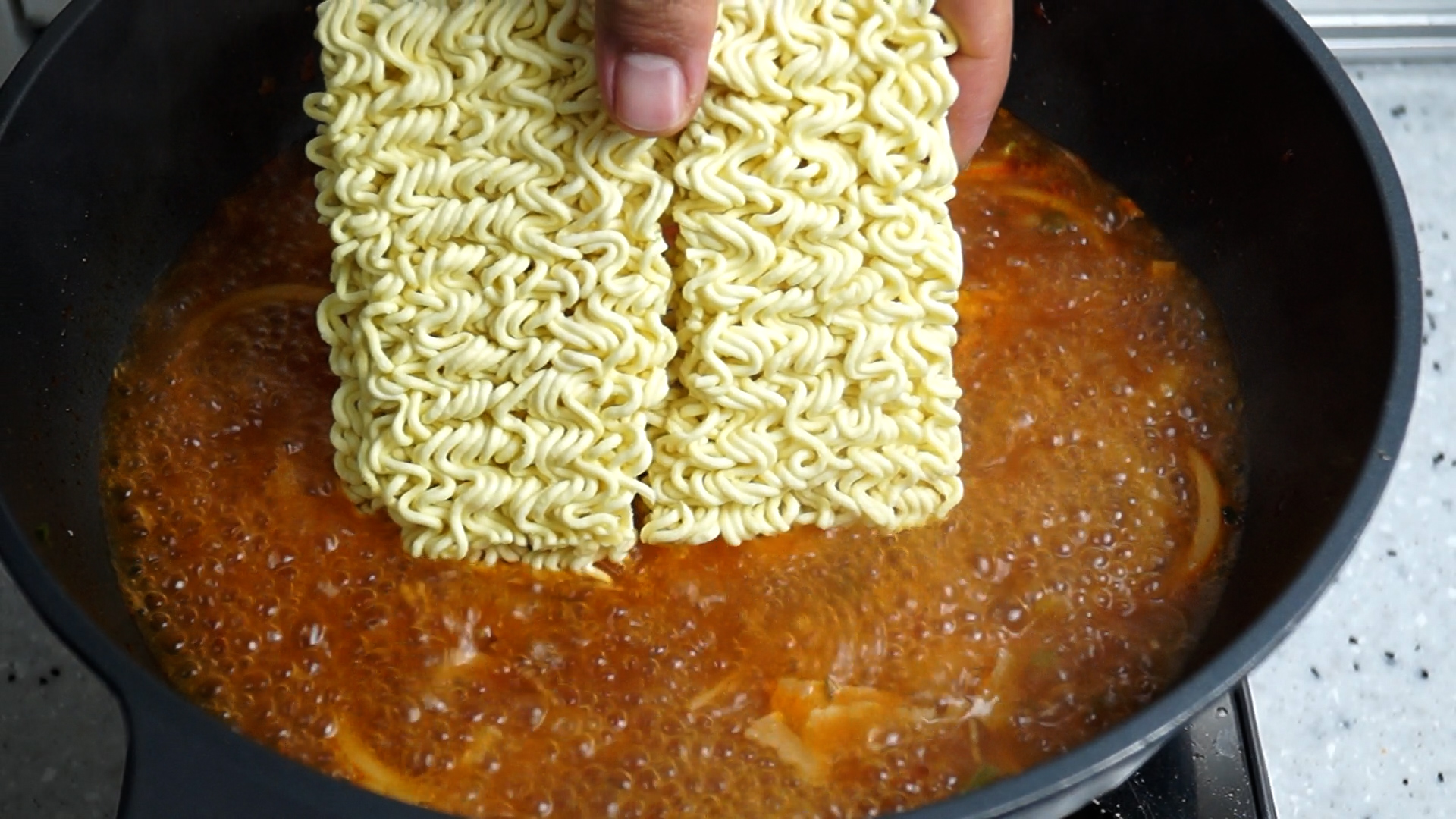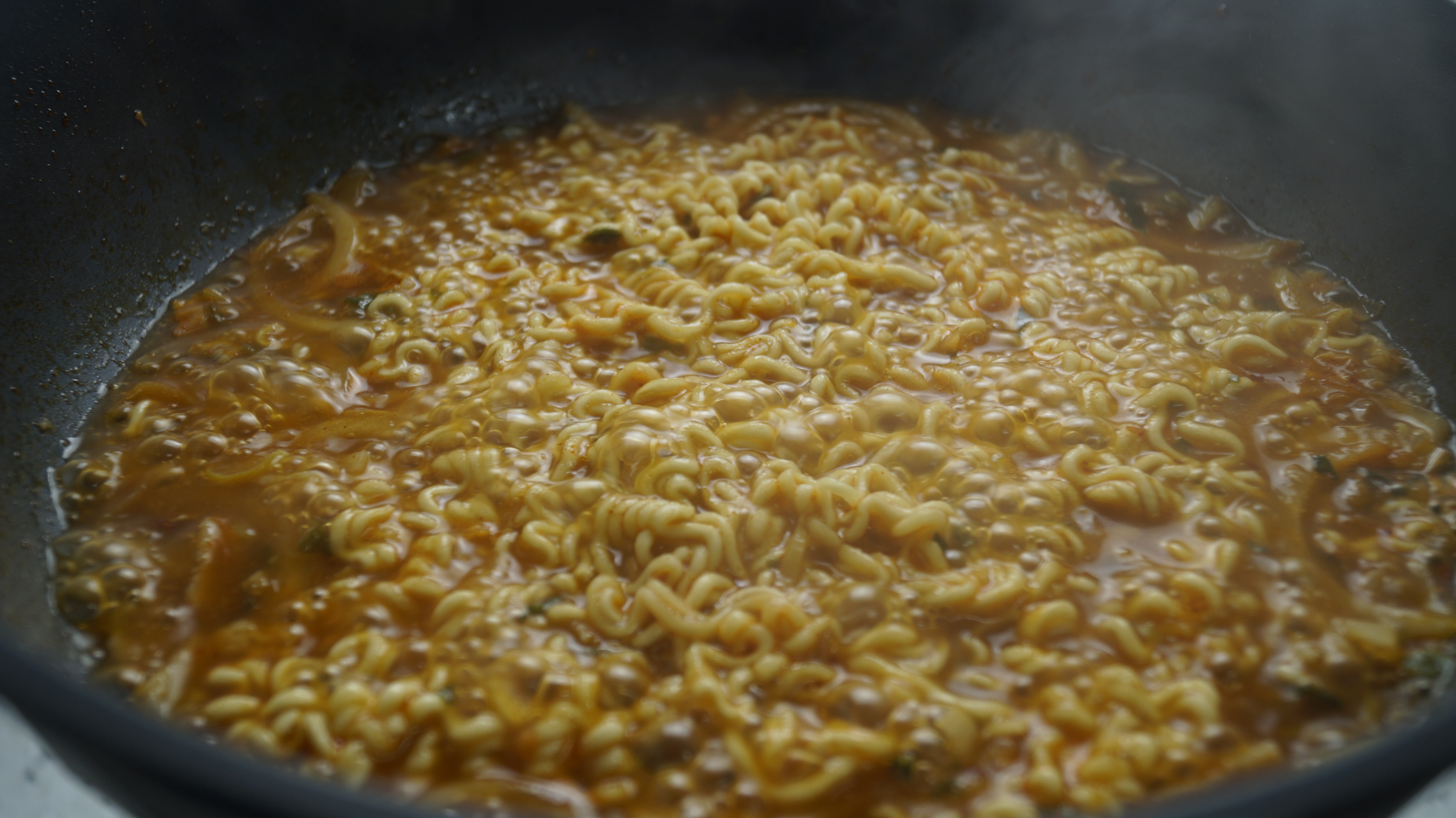13. 2~3분을 끓인 다음 면을 넣고 정해진 시간만큼 끓여주세요. 면을 넣은 다음 끓이는 방법은 워낙 의견이 분분해서 면을 들었나 놨다 하시든 가만히 두시든 중간에 한두번만 섞든 기호에 맞게 끓여주세요^^