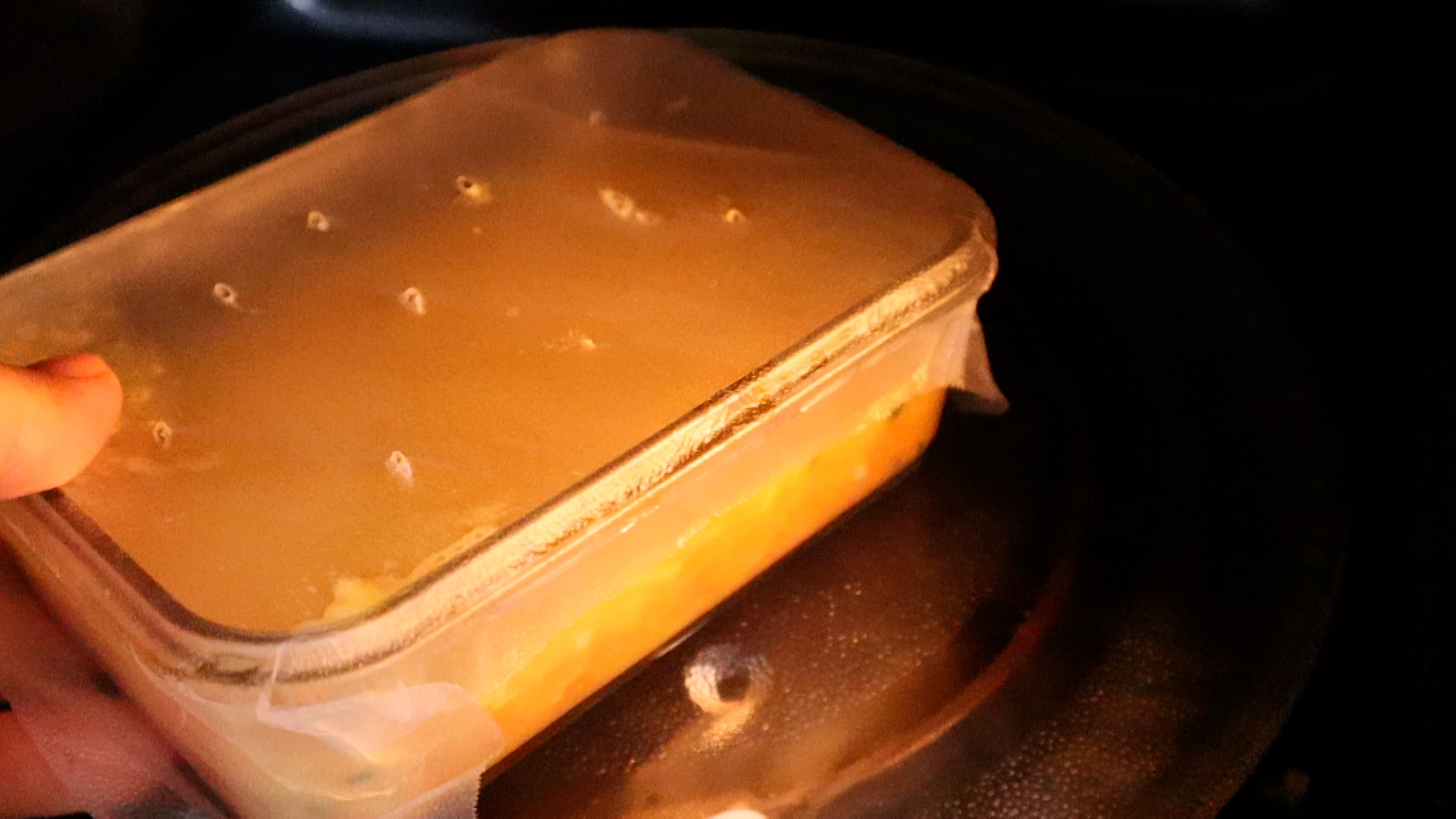 13. 용기를 전자렌지 전용 랩을 사용해서 덮어주세요. 아무래도 요즘 환경호르몬 문제가 많다 보니 일반 랩말고 전자렌지 전용을 쓰시는게 좋습니다.
