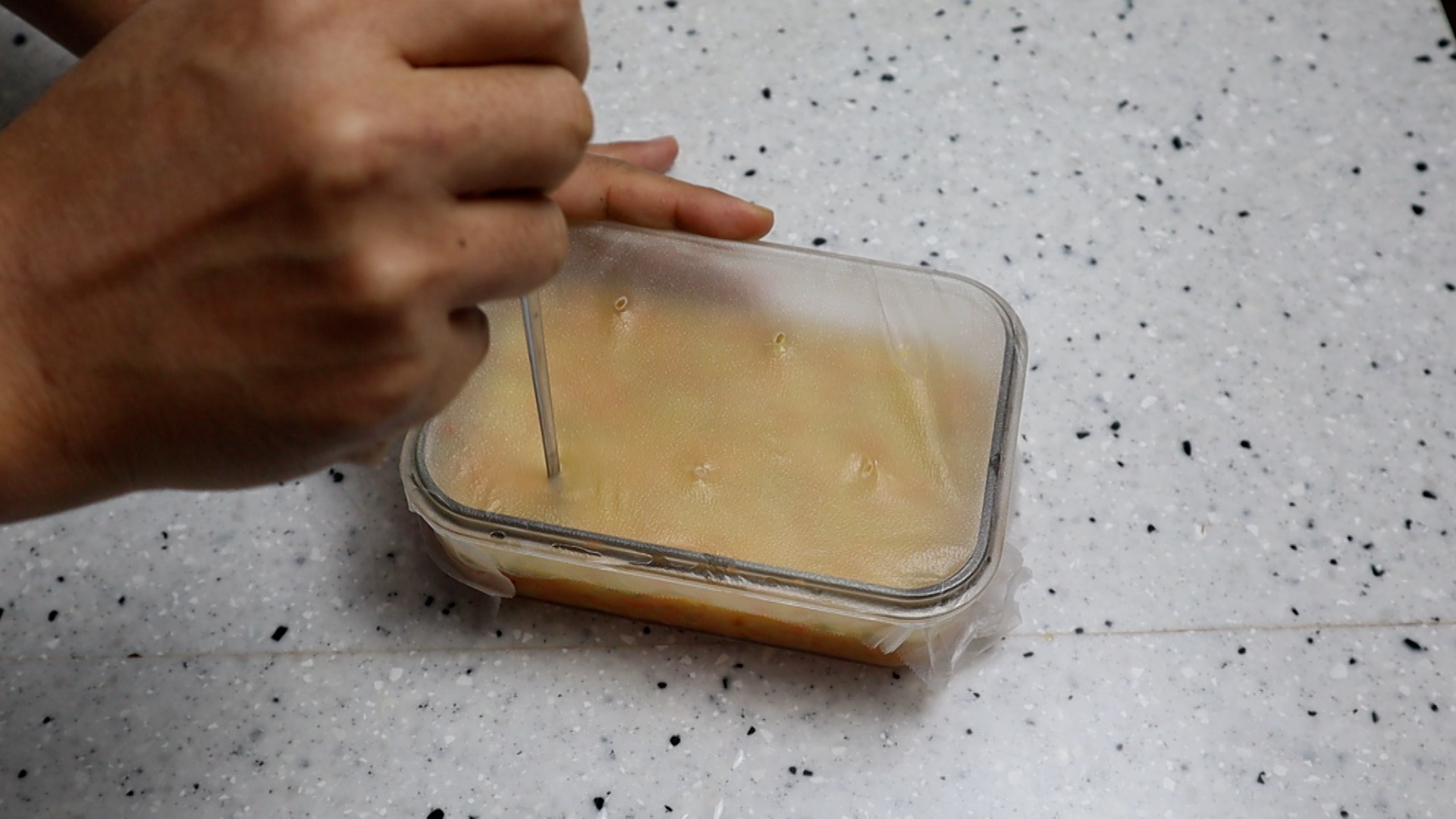 14. 증기가 빠질수 있게 구멍을 10개 정도 뚫어주세요. 랩이 없으면 증기가 적당히 빠질수 있게 덮을수 있는 적당한 크기의 접시 같은걸 덮어주시면 됩니다.